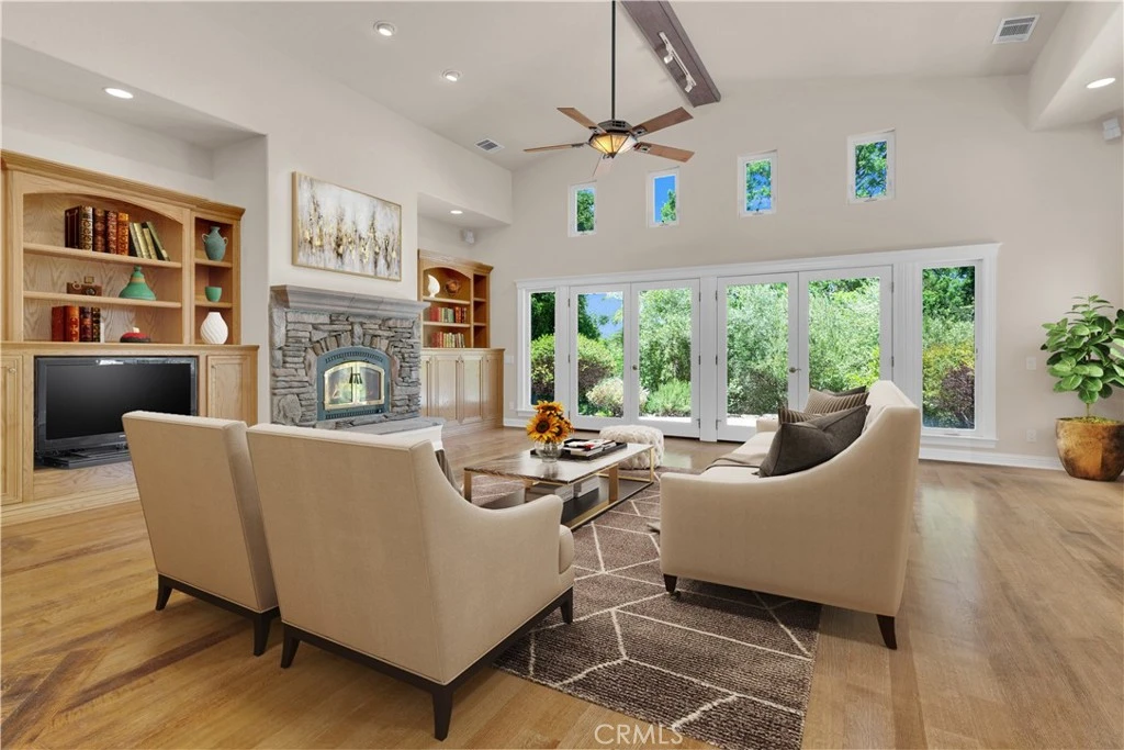 Privacy. Prestige. Timeless Elegance. Welcome to Templeton House—a distinguished estate with separate workshop gracefully set within the rolling hills of exclusive Petersen Ranch. Crafted with remarkable attention by its original owners, this residence offers an uncommon blend of sophistication, serenity, and enduring architectural beauty, all just moments from renowned wineries and premier Central Coast destinations. A gated entrance announces your arrival to a property of rare refinement. The winding drive reveals immaculately maintained grounds, generous guest parking, a bocce court with an elevated viewing deck perfect for sunrise contemplation or sunset gatherings, a fragrant rose garden, and a tranquil courtyard oasis that hints at the elegance within. Step through the private entry gate and be welcomed into a world of understated luxury. The grand living room showcases soaring ceilings, exquisite flooring, and abundant natural light, framed by custom glass doors that open to the landscape. A warm fireplace and custom built-ins create a setting of comfort, grace, and timeless appeal. At the heart of the home lies the chef’s kitchen—an inspired culinary haven equipped with premier stainless appliances including a Viking range, double ovens, warming drawer, and professional-grade ice maker. A generous island serves as both workspace and gathering point, enhanced by a skylight that bathes the room in soft illumination. Adjoining spaces include a charming dinette with custom shelving and built-in desk, as well as a formal dining room ideal for intimate dinners and celebratory occasions. The primary suite is a private sanctuary featuring a dramatic ceiling, personal wood-burning stove, glass doors, and a spa-inspired bath with deep soaking tub, dual vanities, walk-in glass shower, and a spacious, beautifully designed closet. The guest wing—positioned for privacy on the opposite side of the home—offers two oversized bedrooms, abundant storage, and a well-appointed bath. Outdoors, meandering paths, shaded patios, and serene vantage points invite reflection and connection with the natural surroundings. A separate workshop—with private office, dedicated lighting, and roll-up doors—provides exceptional flexibility for artisans, hobbyists, or creative professionals. Additional highlights include a three-car garage, custom dog run, and a sprawling 3.65± acre parcel.