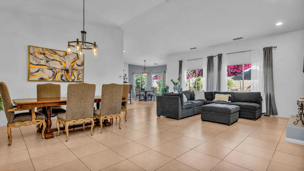This is the home you've been waiting for in Vista Santa Rosa! Located just outside the city limits of Indio and La Quinta, enjoy the rare benefit of no HOA, no Mello Roos, and no city taxes saving you thousands each year.This one of a kind property features impressive high ceilings, a grand double door entrance, and a beautiful water fountain upon entry that creates a stunning first impression. The spacious layout offers 4 bedrooms and 3 bathrooms with an open concept design, perfect for modern living and entertaining. Enjoy both a formal dining area and a separate breakfast area. Tile flooring runs throughout the home, adding both style and durability. The property also includes a 3 car garage and RV parking with a private gate. The private backyard provides the perfect space to relax or entertain. This is a unique opportunity you don't want to miss!