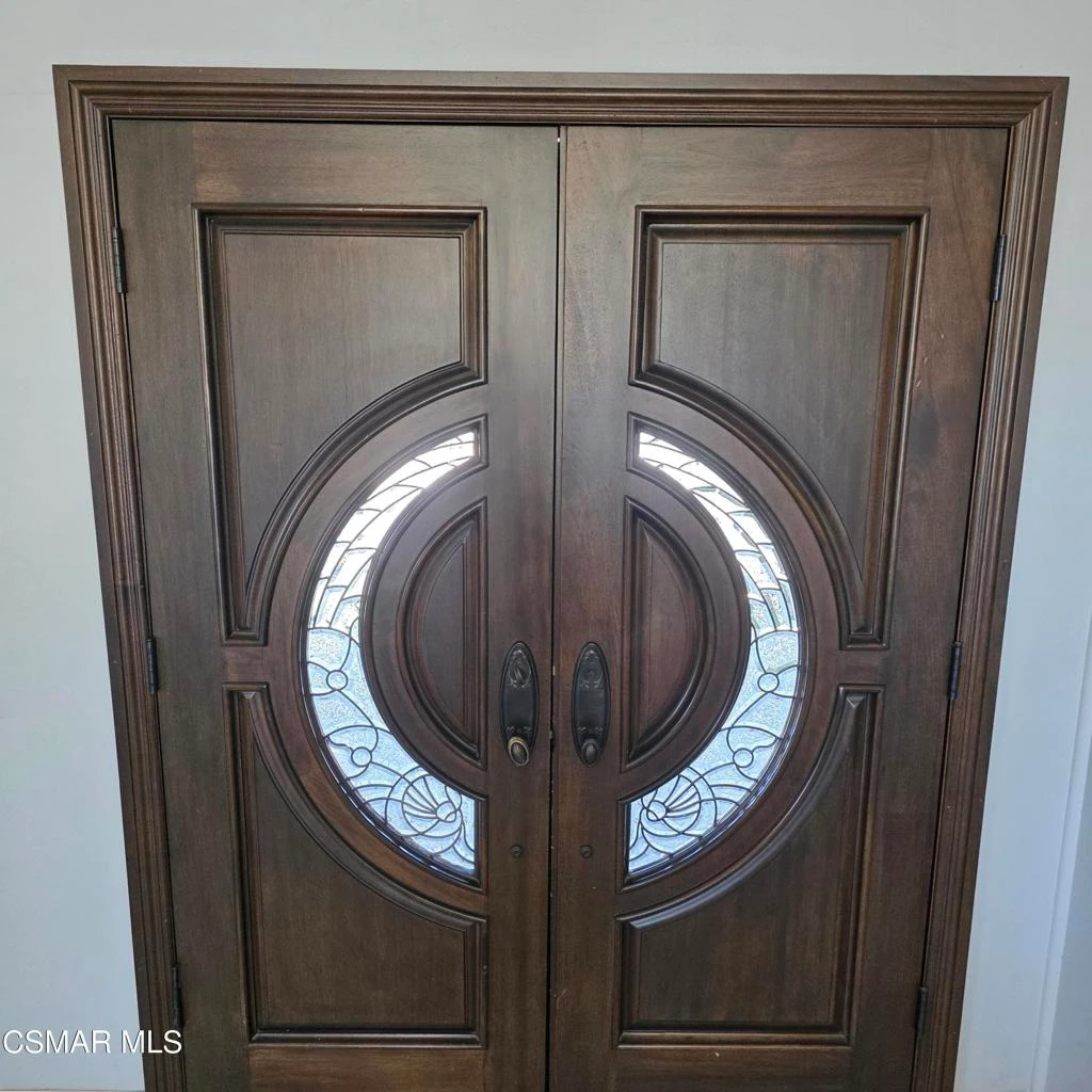 This fabulous two-story corner-lot home offers an exceptional opportunity for buyers seeking generous space, quality upgrades, and mountain views in a desirable setting. The residence encompasses approximately 2,573 square feet of living space on an expansive +/-9,500 square foot lot, offering a well-balanced layout with multiple living areas and functional flow suitable for daily living and entertaining.The home features strong curb appeal with extensive custom stonework along the front approach, including stone planters, architectural retaining walls, and wide stone steps leading to the entry. Drought-resistant landscaping provides low-maintenance appeal while complementing the exterior design.Upon entry, the formal foyer features custom stone flooring with an inlaid medallion and a chandelier. The layout opens naturally, with a versatile office or ground-level bedroom located on the left and a spacious formal living room on the right, showcasing high ceilings, wood flooring, crown molding, and a custom stone fireplace extending to the ceiling. Built-in cabinetry flanks the fireplace and accommodates a mounted television.The interior flows into the kitchen and main living areas. The centrally positioned kitchen features custom marble countertops, a center island with cooktop, ample cabinetry, and built-in appliances, including a dishwasher, oven, and double-door refrigerator with bottom freezer. Clear sightlines connect the kitchen to adjacent living spaces. A built-in seating bench near the rear of the home provides views of the backyard and enhances indoor-outdoor connection.Just beyond the kitchen, a step down leads into a family room featuring a stone-accented fireplace, custom built-in cabinetry with solid and glass-front storage, marble countertop surfaces, and crown molding. Adjacent to the family room is a coffee and beverage bar with sink, cabinetry, and display shelving. A bathroom with shower access, nearby storage, and a private laundry room with cabinetry and washer/dryer hookups are located off this area. An additional bedroom or office on the main level includes sliding glass doors opening directly to the backyard.The garage configuration includes a two-car garage with built-in cabinetry, marble countertops, glass-front storage, shelving, and wine storage, remaining fully usable as a garage or multipurpose space. A separate one-car garage includes an EV charger and rear access to the side yard and backyard. Interior and exterior security cameras are installed.Upstairs, the second level includes two secondary bedrooms with closets and a hallway bathroom finished with stone surfaces, a marble countertop, and custom fixtures. Crown molding and wood flooring continue throughout the upper level. The primary suite is privately positioned and generously sized, featuring a walk-in closet with built-in cabinetry and organization systems. The en-suite bathroom includes dual sinks, custom cabinetry, designer fixtures, stone and marble surfaces, wainscoting, a jacuzzi tub with stone surround, and a walk-in shower with glass enclosure and dual shower heads.The backyard features extensive stone hardscaping, mountain views, a custom BBQ island with prep space, and a circular fire pit with full stone surround and built-in seating. The yard also offers open space suitable for play, pets, or future improvements such as a pool. Custom planters, lighting, fencing, and side-yard access complete the outdoor layout.With its large lot, mountain views, crown molding throughout, extensive custom stonework, flexible floor plan, and defined indoor and outdoor living spaces, this home presents a strong opportunity for buyers seeking a well-built residence.