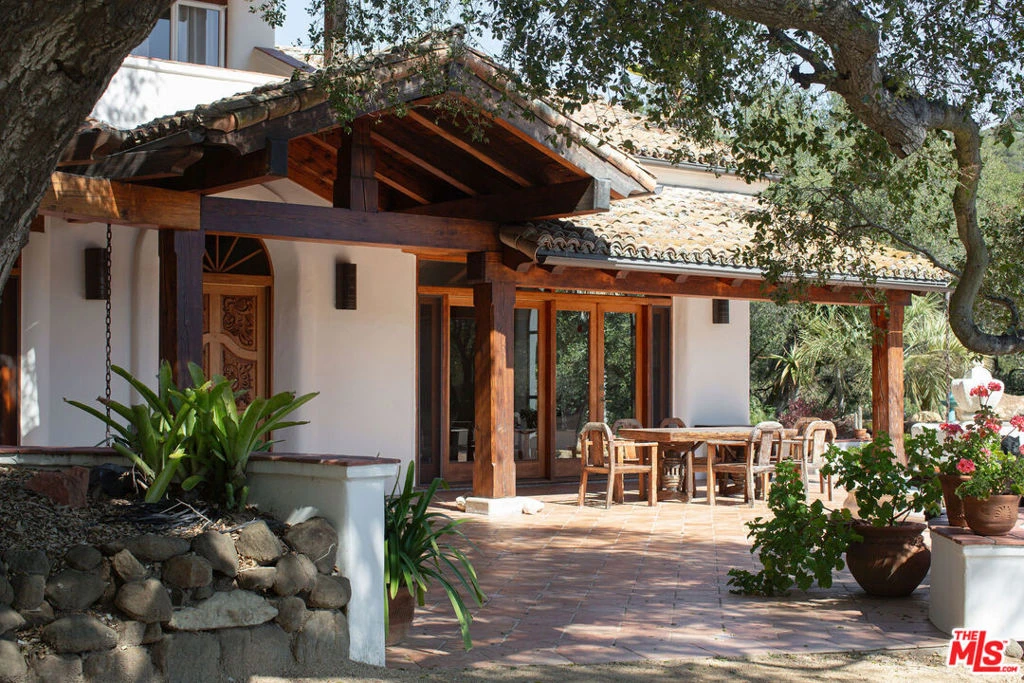 Nestled on over 10 acres, Casa Encinal offers an extraordinary opportunity to own one of the canyon's most private and serene estates. With expansive views and unparalleled access to nature, it also has quick and easy access to the town of Topanga and Calabasas.Completed in 1989, this magnificent home is a masterpiece inspired by the timeless architecture of traditional South American estates. Once you arrive, you feel as though you have been transported to a different time and place. Walking under the oaks, you are led past a soothing fountain and wisteria-draped pergola to a stunning hand-carved door that opens into a world of beauty and craftsmanship. Within the home, large timbers, soaring ceilings, and rich, warm woods evoke a sense of grandeur. Mahogany bookcases and a cozy inglenook in the living room invite you to relax around the fireplace. French doors open to multiple charming tile patios. Heirloom Brazilian cherry floors grace the rooms, and handmade tiles, featured throughout, add an artisan touch. Casa Encinal is more than just a home; it's an exceptional sanctuary where convenience, elegance, and nature's beauty converge.