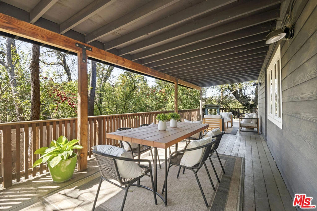 Find your peaceful place to abide in this four-bedroom, three-bath, contemporary cottage-style home with two separate guest suites. Situated on a usable third of an acre with a fenced yard, this home gives you room to entertain family and guests in a mini-compound designed for indoor-outdoor living. The huge kitchen anchors the living and dining rooms, with an open plan that allows guests to flow from the shaded view deck to the back patio. The primary suite is separate from the other three bedrooms, allowing privacy. Having so many bedrooms provides options for a great home office. The main house bonus basement room could be a home theater, a playroom, or an art studio. Your guests will enjoy their stay in either the separate studio unit with its own view patio or the guest suite attached to the garage. Flat play areas are edged by grapefruit, lemon, lime, plum, and pomegranate trees. Plenty of parking in the garage and driveway. Close to Topanga State Park trails. Come up to the canyon!
