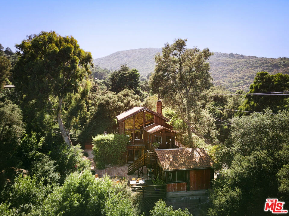 This magical mountain compound exemplifies the charm, creative spirit and natural beauty for which Topanga Canyon is known and loved. Since its original construction in the early '70s with massive timbers reclaimed from the Pier, this home has been owned and visited by award-winning actors, artists and musicians. A step inside is a walk back in time: next to the massive Jack Rice stone fireplace, a two-story wall of glass frames pristine views of the Santa Monica mountains, evoking the wildness of a Big Sur retreat. Exceptionally private and made for indoor/outdoor living, paths connect mature oaks and eucalyptus with multiple decks, outdoor dining areas and a separate guest house backed by a lovely seasonal creek. The recent, year-plus renovation included extensive systems and structural upgrades, meticulous timber restoration and a stunning interior redesign by a former set designer and architectural preservation specialist. Situated on one of the best cul-de-sac streets in climate-perfect Fernwood, this exceptional hideaway has a new natural plunge pool, outdoor shower, built-in Finnish sauna and spa--all on two spacious, newly landscaped parcels of land. Completed by four coveted off-street parking spots and a garage.