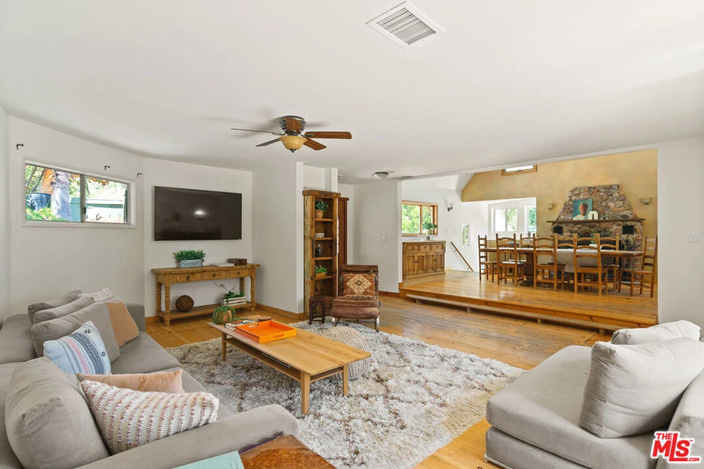 Nestled on a peaceful street off Old Topanga Canyon Road, this light-filled 3-bedroom plus office, 2-bath home is a soulful retreat surrounded by nature and full of rustic charm. High ceilings, expansive windows, and soft natural light throughout create a warm, open atmosphere that embraces the spirit of canyon living. The main living and dining areas offer a comfortable flow, leading into a clean, functional kitchen that's ready for your personal touch. Natural materials and organic tones carry throughout the home, bringing a sense of calm and connection to the outdoors. Each of the four bedrooms feels bright and serene, with the primary suite opening to a private patio perfect for quiet mornings or stargazing nights.