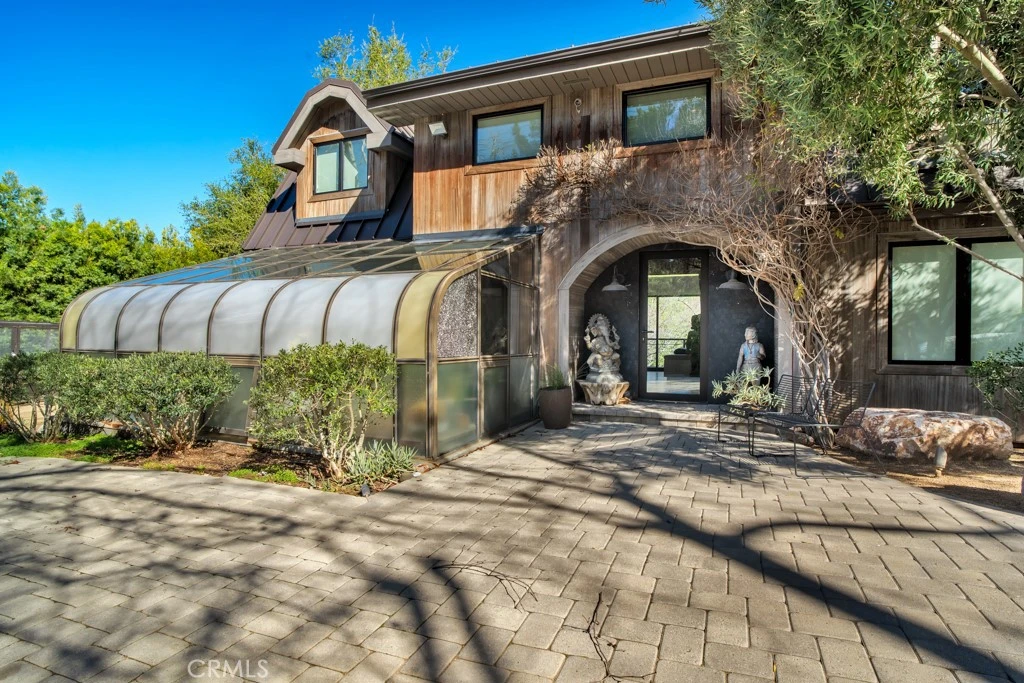 This magical Topanga sanctuary offers a unique blend of modern living and natural beauty and was recently remodeled and includes new HVAC. With its stunning views of the Santa Monica Mountains and an array of luxurious features, this property is perfect for both relaxation and entertainment. Once you enter this private oasis through the privately gated circular driveway, you can say goodbye to the hustle and bustle of city life, where you will enjoy privacy and peacefulness. Outside has potential for outdoor riding, & the 2 amazing yurts create a versatile living experience. Its proximity to the beach and award-winning schools makes it an ideal location. Experience ultimate inside/outside living in this modern custom home with views of Santa Monica Mountains nature conservancy. Post & beam home, energy-efficient, metal roof, 2 fireplaces and a gourmet kitchen w/ Sub Zero & Wolfe range. Designer finishes such as Carrera marble waterfall counters in kitchen & bathrooms, white oak wide plank flooring & custom woodwork. Primary Suite has floor to ceiling windows w/breathtaking views of the mountains & seasonal running stream & waterfall. There is a sunroom/atrium off the kitchen. Primary Suite has a fireplace, with a large ensuite bathroom & walk-in steam shower for 2, marble soaking tub & waterworks fixtures. The upstairs loft could be a 4th bedroom, & a downstairs bedroom currently a media room. A large deck is great for entertaining & is an ideal setting to see the vast views of this terraced 2.67-acre property. The 2 amazing yurts are 800 SF & 400 SF, respectively. They have bamboo flooring, HVAC, and are ideal for an office, studio, or guest house. Steps away is bathhouse w/ a ¾ bathroom, kitchenette, & sound-proofed recording studio, outdoor shower & Japanese cedar soaking tub. Situated in an ideal location, minutes from the beach, westside & valley, with award-winning charter schools. The Topanga Community Center and Theatricum Botanicum and Pine Tree Circle are only minutes away. This property offers a wealth of features that enhance both comfort and functionality. The inclusion of electric car charging, a soundproof recording studio, and backup generator shows a thoughtful approach to modern living. Extensive lighted landscaping, and various amenities like the Japanese cedar tub and steam shower, it’s designed for relaxation and creativity. The setup is perfect for those who appreciate both nature and the convenience of contemporary comforts.