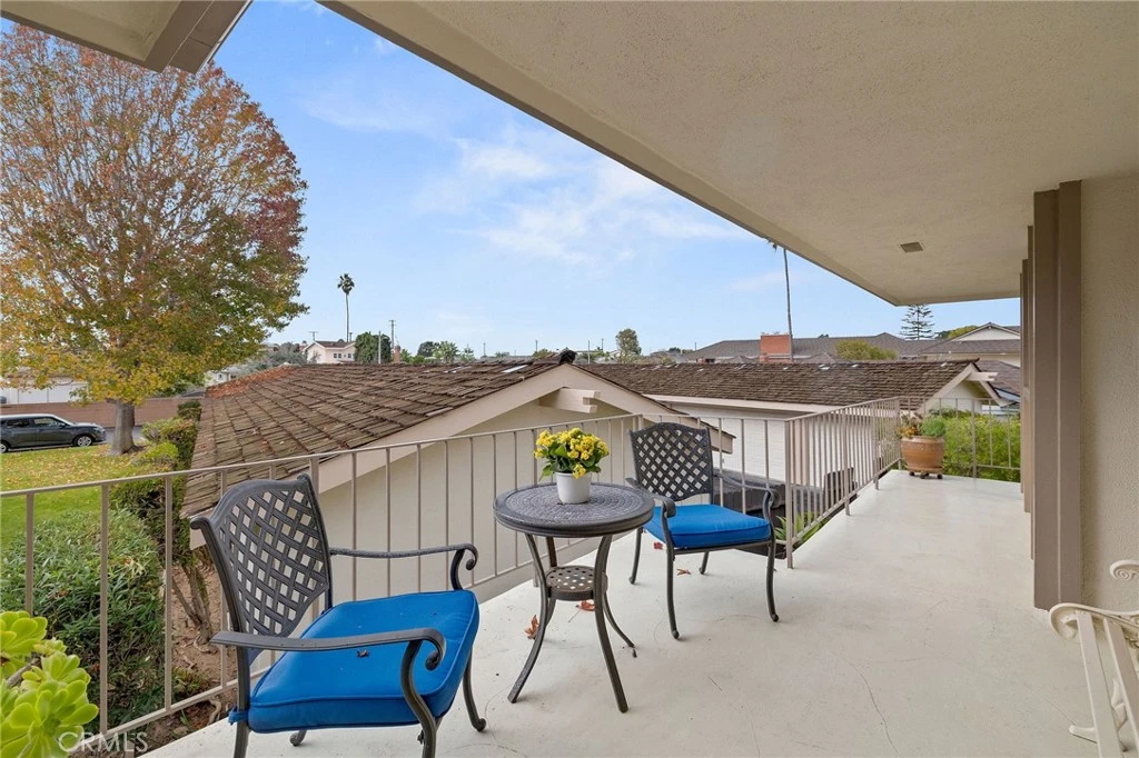Great 2 bedroom 2 bath (1+3/4) upper condo with "lots of light" in the desire able New Horizons 55 plus community - convenient seat ride on stairwell to use so you don't have to walk up or down the stairs - first there is a front porch where you could watch the sunsets - step inside your new home on wood floors and see the the comfortable living room with a brick fireplace - plus a balcony with room for a table and chairs - great spot to relax. read a book and enjoy a glass of wine or an ice tea - remodeled kitchen with granite counters, stainless dishwasher and oven, lots of cabinets, recessed lighting and a breakfast counter - adjacent dining area on wood floors with a chandler for those formal meals - one bedroom with mirror closet doors - spacious primary bedroom with private balcony and bath - plus two closets with mirror closet doors and sitting desk - all electric like all units in this wonderful senior community - shutters + drapes + newer interior doors + vinyl windows + mirror closet doors - one assigned garage space - community club house, tennis courts, pool, spa, club house and 9 hole golf course (which you won't find in newer senior communities) - convenient to medical, shopping, restaurants, parks, the theaters, 15 to 20 minutes to the beach and reasonable freeway access - great opportunity to get in the highly desire able senior community - what are you waiting for?