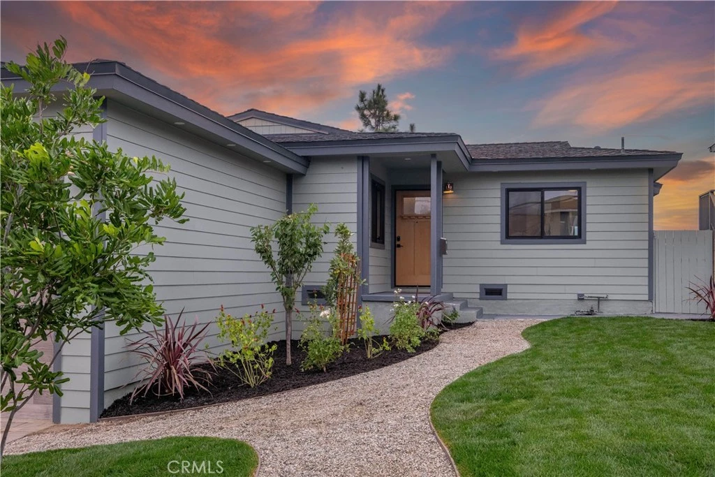 New Price Adjustment!!! Welcome to your future home at 25710 Crest Rd, a true “Honey, stop the car!” opportunity in the desirable Hillside Walteria neighborhood of South Torrance. This beautifully updated 4-bedroom, 1.75-bath home is ideally located just half a mile from Rolling Hills Estates and less than five miles from the beach. Boasting exceptional curb appeal, it features new exterior paint, Hardie siding, a 50-year CertainTeed Presidential Shingle roof, new fascia boards, soffits with casement lighting, three new exterior fixtures, an oversized custom garage door, a new paver driveway, tankless water heater, 200 AMP electrical panel, EV charger, and a stunning Signet fiberglass entry door with privacy glass. The front and rear landscaping showcase new sod, sprinklers, and drip systems, along with a Carrotwood tree, Green Gage plum tree, apple and lemon trees, and 45 new privacy trees in the backyard. Inside, natural light fills the open living room with refinished original hardwood floors, smooth ceilings, new baseboards, and LED recessed lighting that flows into the dining area with beautiful views. The fully remodeled kitchen features new soft-close cabinetry, quartz countertops, a farmhouse sink overlooking the landscaped front yard, stainless steel appliances, and luxury laminate flooring. The sunroom has been converted into a fourth bedroom with a private ¾ bath, recessed lighting, mirrored closets, and direct access to the rear yard. Both bathrooms include new marble flooring, full bathroom has new vanity, and elegant finishes. Additional highlights include new dual-pane Marvin Low E3 windows, fresh interior paint, skim-coated walls, five ceiling fans, and an inside laundry room with cabinetry. The spacious backyard is perfect for relaxing, entertaining, barbecues, or gardening. Conveniently located near Trader Joe’s, AMC Theatres, Whole Foods, 24-Hour Fitness, and an array of shops and restaurants. This stunning home is also located in wonderful neighborhood within top-rated schools. This gem won't last long, it's a must-see!!!