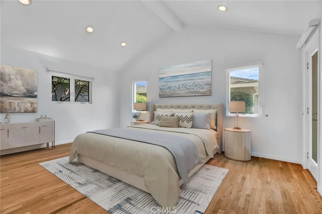 Beautifully appointed single-story home, ideally situated in a neighborhood with excellent schools and a SELLER OWNED SOLAR SYSTEM. This inviting home features a spacious living room with vaulted ceilings and skylights, allowing natural light to pour in, and a cozy fireplace to warm you on cooler evenings. The living room seamlessly flows into a covered back patio, perfect for entertaining, with a picturesque view of the lush rose garden. The remodeled kitchen is a cook's dream, complete with a central island and modern amenities. Not to be missed is the primary suite with vaulted ceilings with separate entrance to the tranquil backyard. Convenience is enhanced with a stackable washer and dryer included. The home boasts beautiful hardwood floors throughout, adding elegance and warmth to the space. There is also a two car garage, providing convenient parking and extra storage. Don't miss the opportunity to make this delightful home yours!