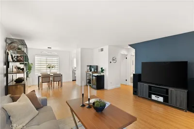 Beautifully improved townhouse with a direct access private garage. This gem has been upgraded new dual pane windows all aroung, including the sliding door to a private front patio. Living area is spacous with a high ceiling and a large designer style ceiling fan. New centreal heat and A/C was installing in the last few months. Laminate flooring throughout living area and large tiles in the kitchen. This move in ready townhouse is conveniently located close by to the 110 Fwy and offers quick freeway and shopping access. Garage floor has been freshly sealed and painted with a durable finish. Bathrooms have also been updated with a modern look and feel. The complex includes outdoor play area, a swimming pool, and community mailbox all of which are close to the unit. Schedule a private showing now before it is gone.