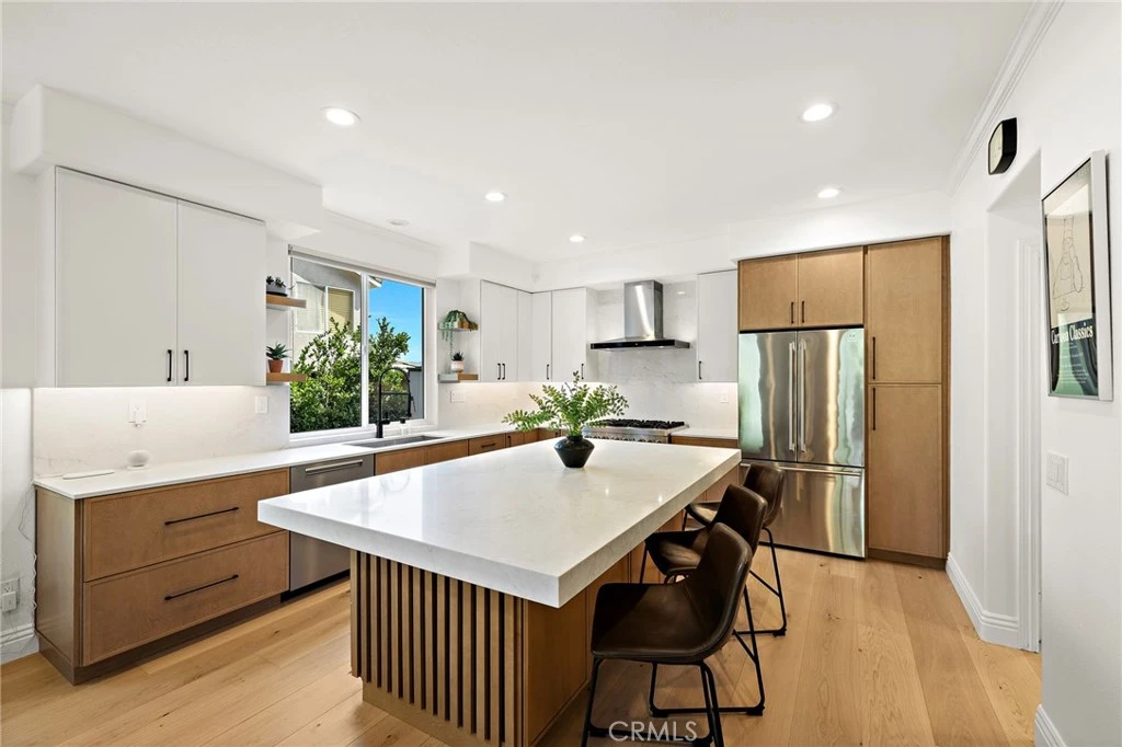 Situated in the gated community of Stonecliff this home is upgraded throughout with new gourmet kitchen, French Oak wood flooring, owned solar panels, new windows, new roof and new HVAC to name a few. This home blends modern comfort with quality finishes. French oak hardwood flooring runs throughout the downstairs, creating a warm and cohesive feel. The kitchen showcases a recent complete remodel featuring custom cabinetry and premium appliances, including a JennAir gas range, Miele dishwasher with built-in water softener, and sleek Kraus sinks—combining both functionality and style. Situated between the kitchen and formal dining area, a beautifully designed bar or coffee station features a prep sink, mini-refrigerator, and spacious pantry—ideal for everyday convenience and entertaining. The spacious family room, open to the kitchen, showcases a stunning rebuilt fireplace with a marble surround and custom tiled built-ins with floating shelves. A built-in surround sound system and dedicated AV cabinet complete an exceptional entertainment experience. Dining room open to the formal living area features French doors to a charming front patio featuring a pergola with integrated lighting—an ideal spot to relax and unwind after dinner. The upstairs showcases the primary suite and four generous secondary bedrooms, one of which is large enough to serve as a bonus room. The primary suite features French doors opening to a balcony with serene canyon views, and an updated bathroom with new vanities, quartz countertops, and two custom closets. The private backyard offers a peaceful retreat with pavers, mature lemon trees, and a spacious eight-person jacuzzi with quiet filtration and dual pumps. Backing to a serene canyon with no homes behind, the setting provides exceptional privacy and tranquil views. Additional upgrades include a rare finished utility room (previously the 3rd car garage), tankless water heater, whole-home WiFi wiring, integrated security cameras, upgraded lighting with dim-to-warm switches, enhanced under-stairs storage, garage with epoxy flooring, abundant storage, and EV charger. Ideally located across from the community pool and near parks, scenic trails, and highly regarded Wagon Wheel Elementary School and Tesoro High School, the home also offers convenient access to the 241 Toll Road. A rare opportunity to own a home where thoughtful upgrades, comfort, and setting come together seamlessly.