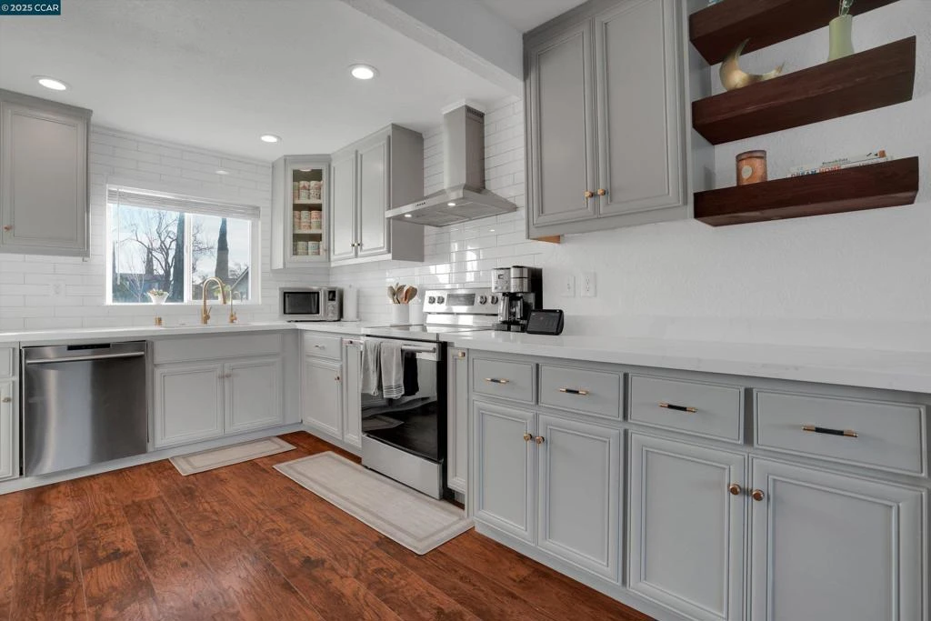 Beautiful end unit with exceptional upgrades throughout! Featuring a waterfall quartz countertop, high-end kitchen cabinets with built-in lighting and updated hardware, plus an open-concept layout. The kitchen also boasts a subway tile backsplash, new sink, range hood, and smart home technology. Additional updates include new exterior lighting, double-pane windows, fresh interior and exterior paint, modern ceiling fans, and a new fence with backyard pavers and a pergola. One car garage, one carport parking space and plenty of visitor/street parking! Updated in-unit laundry room. Conveniently located near downtown Tracy’s shops and restaurants. Come see for yourself and experience this stunning home!