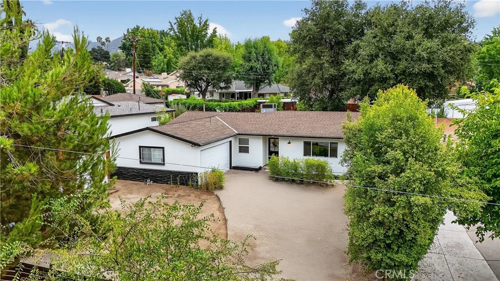 Large Lot! Experience the Ease of Single-Level Living – Welcome to 9534 Tujunga Canyon Blvd. Perfectly positioned near the border of La Crescenta and just across from the beloved Fehlhaber-Houk Park, this beautifully updated 3-bedroom, 2-bath home offers the ideal blend of privacy, convenience, and natural beauty. Step inside to a light-filled open-concept living area, where vaulted ceilings create an airy sense of space—perfect for both relaxed everyday living and effortless entertaining. Updated in 2025, the remodeled chef’s kitchen is a showpiece, wrapped in elegant quartz and centered around an oversized island that provides abundant workspace, storage, and casual seating. Both bathrooms have been tastefully updated in 2025 with marble-topped vanities, designer tile, and modern finishes—one featuring a luxurious walk-in shower. Each of the spacious bedrooms offers serene garden or park views, bringing the outdoors in and creating a peaceful retreat. Outside, the property continues to impress with a two-car garage, a large driveway, and an additional circular drive providing ample parking for multiple vehicles—or even an RV. The expansive backyard, shaded by mature oak trees, offers exceptional privacy and endless possibilities: add a pool, build an ADU, or design the ultimate entertainer’s paradise. A Tuff Shed provides additional storage. With its tranquil setting, modern updates, and incredible potential, this home is a rare find in a highly sought-after area. Don’t miss this opportunity to make 9534 Tujunga Canyon Blvd your own private sanctuary.