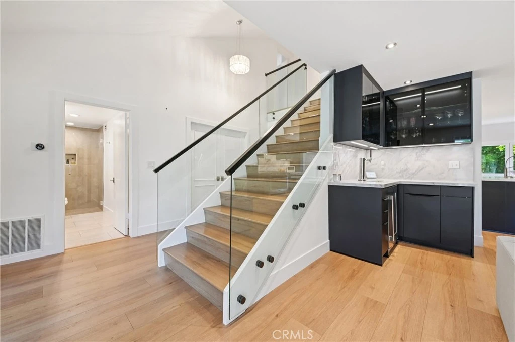 Step into luxury with this fully renovated 4 bedroom, 3 bathroom home, reimagined from top to bottom for modern living and comfort. Nestled across from a peaceful park in a prime Tustin neighborhood, this stunning residence effortlessly blends high-end finishes, smart technology, and thoughtful design. The open-concept layout features a convenient downstairs bedroom with a full bathroom and private access—ideal for guests or multi-generational living. The stunning custom German-designed kitchen boasts sleek cabinetry, pull-out pantry drawers, and premium inserts, while bi-folding bay windows bring in abundant natural light and a seamless indoor-outdoor connection. Enjoy entertaining in the inviting living room with surround sound or at the custom bar with a built-in keg on tap. Upstairs, the primary suite offers a luxurious retreat complete with a top-of-the-line Preston custom closet system from The Container Store. This home is loaded with upgrades, including paid-off NEM 2.0 solar panels (own 100% of your power), a Tesla charger, brand-new AC unit, brand new tankless water heater, and whole-house water filtration system. Additional improvements include an updated electrical panel, full home repipe last year, Google Nest smart system, and an outdoor Jacuzzi for relaxing evenings at home. The private backyard is a peaceful haven with mature fruit trees, including avocado, orange, and pineapple feijoa. Ideally located within the Tustin Unified School District, this home is also close to shopping, dining, and freeway access. Every inch of this home has been meticulously updated to combine style, sustainability, and comfort. With its thoughtful layout, premium upgrades, and unbeatable location, this is the perfect place to call home.