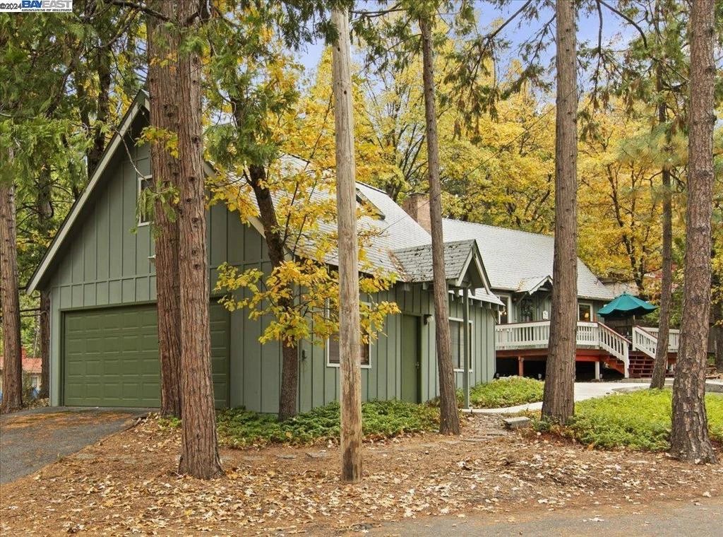 In the heart of Twain Harte this 3-bedroom home w/ an ACTIVE TWAIN HARTE LAKE MEMBERSHIP is located on a level cul-de-sac w/ a driveway & large 2-car garage w/ workshop. Steps from the main home, the spacious detached garage includes a large 2-bdrm loft w/ high ceilings, offering versatile potential for additional living space, ideal for guests or a variety of uses. The garage area below the loft has space for 2 cars & a workshop, with opportunities to enhance the garage & loft area, w/ the idea of creating a separate space or expanding the property's overall potential, w/ the concept of creating an independent living space just feet away from the main cabin. The main cabin offers 3 bdrms & 1 bath, full of charm & character. It features pine walls, wood ceilings, and a cozy fireplace that adds warmth to the open-concept layout. Recent updates include newer windows, blinds, a spacious front deck, and freshly painted exteriors. Minutes from Twain Harte Lake, dining, Twain Harte Golf Course, Dodge Ridge, New Melones Lake & outdoor activities, this home offers the perfect base for hiking, skiing, golf & more. Active Twain Harte Lake Membership option available. The lot features towering cedar and oak trees providing shade. Friendly neighbors & starry nights complete the lifestyle.