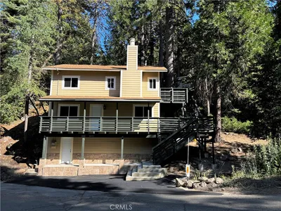 Welcome to 26251 Alpine Lane, a cozy and character-rich cabin nestled in the heart of Twin Peaks. Less than 10 minutes from the lakefront in Lake Arrowhead Village, this mountain retreat offers the perfect blend of rustic charm and modern comfort. Step onto the expansive wrap-around deck and soak in breathtaking mountain views — ideal for morning coffee or evening gatherings. The large circular driveway provides easy access and ample parking for guests. Inside, the warm and inviting living space is anchored by a stunning custom oversized brick fireplace — a true centerpiece for cozy nights in. The cabin-style interiors add a timeless mountain feel, while thoughtful updates make this home move-in ready. The finished side yard features an additional deck, creating a perfect space for outdoor entertaining or quiet relaxation. Downstairs, a finished basement of approximately 300 sq ft includes a laundry area with washer and dryer, adding convenience and bonus living space. Whether you're looking for a peaceful full-time residence, a weekend getaway, or a vacation rental investment, this charming Alpine Lane property is a rare find in a sought-after location.