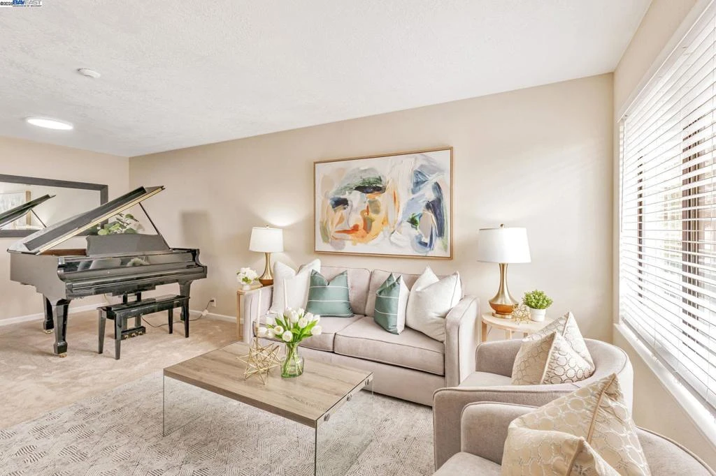 WOW!! Check this price!! Seller is motivated!! Nestled at the base of the Union City foothills, this move-in ready condo offers a tranquil and serene living experience. Recently refreshed with a complete interior and exterior paint job, new flooring, and a rebuilt balcony and staircase, the home exudes a bright and cheerful ambiance. Modern updates include new lighting, new flooring and the convenience of an included washer/dryer and refrigerator. Enjoy easy access to public transportation with a bus stop, BART, and CA-84 nearby. Dry Creek Regional Park is just north of MIssion Village. Open house Sunday June 29th, 2-5 pm