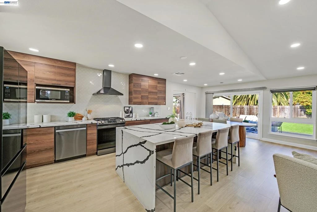 Beautifully remodeled home tucked in a quiet court in one of Union City’s most desirable neighborhoods. This spacious 3 bed, 2 bath home offers over 1,500 sq ft of living space with vaulted ceilings, an open floor plan, and abundant natural light. The stunning remodeled kitchen features a massive waterfall island, modern cabinetry, and updated appliances, perfect for entertaining. Situated on a huge 8,886 sq ft lot, the expansive backyard offers endless possibilities—build an ADU, add a basketball or pickleball court, expand the home, or create the ultimate outdoor entertaining space. The expanded family room offers potential for a 4th bedroom, and the property also includes a spacious side yard and new HVAC system. Tastefully remodeled and move-in ready.