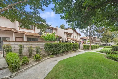 The Crown Jewel of Shelly Square – A Rare Designer End-Unit Townhome. Tucked within the exclusive Shelly Square Townhomes North community of only 29 residences, this beautifully remodeled end-unit townhome stands out as one of the most distinctive homes to hit the neighborhood. Thoughtfully curated with stylish finishes, modern design, and inviting indoor-outdoor living, this residence blends refined elegance with everyday comfort. From the moment you step inside, you are welcomed by a bright and open layout enhanced by beautiful wood laminate flooring, designer accent walls, and abundant natural light that fills the space with warmth and character. The inviting living area showcases a stylish fireplace and dramatic statement wall, creating an atmosphere that feels both sophisticated and cozy. The remodeled kitchen serves as the centerpiece of the home, featuring granite countertops, a farmhouse sink, stainless steel appliances, breakfast bar seating, and a tray ceiling that add architectural charm. The space flows seamlessly into the dining and living areas, ideal for everyday living and entertaining. Upstairs, the primary suite offers a private retreat with wood plantation shutters and a beautifully remodeled bathroom featuring a dual vanity and spacious shower. Step outside to discover your own private outdoor sanctuary. The Alumawood covered patio with ceiling fan creates an inviting lounge space, while French doors open to a charming backyard with a fire pit, wrap-around seating, and ambient lighting perfect for relaxing or entertaining. As an end unit with only one shared wall, the home offers enhanced privacy and a peaceful setting. The property also includes convenient access to a detached two-car garage. Residents enjoy a beautifully maintained gated community pool and spa, perfect for warm summer days. Ideally located near Sycamore Hills Plaza, Colonies Crossroads, scenic bike paths, dining, shopping, and easy access to the 210 freeway, this home offers the perfect balance of lifestyle and convenience. A rare opportunity to own one of the most distinctive homes in one of Upland’s most desirable townhome communities.