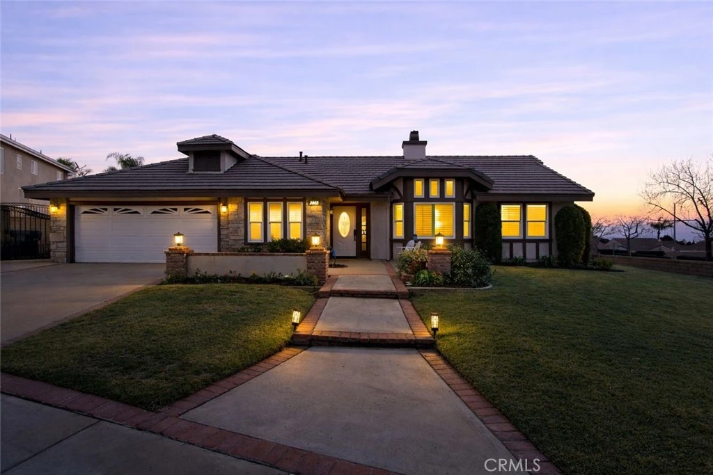 Welcome to this exceptional single-story home located in one of North Upland’s most sought-after areas; where homes of this caliber rarely become available. Set on a generous 9,850-square-foot corner lot, this well maintained home offers stunning mountain views from both the front and backyard, along with the privacy of having no homes behind you. The expansive grounds provide endless potential for outdoor living and family enjoyment. There is plenty of room to build a pool, an ADU or add-on and still have plenty of yard. A charming courtyard entry invites you inside, where vaulted ceilings, classic wainscoting, a double sided fireplace, and rich wood flooring immediately create a warm, elegant, and welcoming atmosphere. The dramatic bay window is framed with custom shutters, and is an ideal place to showcase your holiday tree or a grand piano. The thoughtfully designed layout flows seamlessly into the formal dining area, making this home perfect for entertaining. The remodeled kitchen serves as the heart of the home, showcasing rich cabinetry, granite counters, and center island. The kitchen opens to the family room, so you can stay connected while preparing meals or watching TV. French doors lead to the backyard, creating an inviting indoor-outdoor living experience. The family room has a tastefully designed fireplace that complements the kitchen finishes, and large windows overlooking the backyard. The home offers three spacious bedrooms. The primary bedroom has vaulted ceilings and a French door opening to the backyard. The primary bathroom has dual sinks, dual mirrored wardrobes, a soaking tub, and a walk-in shower. The hall bath has been elegantly remodeled and includes direct access to the backyard—an ideal feature for future pool plans or outdoor entertaining. The 3rd garage was professionally converted (without permits) and adds approx.152 sq. ft. of living area, offering a versatile space perfect for a home office, gym, playroom, or potential fourth bedroom. Additional highlights include RV parking as well as numerous upgrades such as updated windows, fresh paint, wrought-iron gates, storage shed, expanded patio area, and more. Whether you are seeking to downsize, transition from a two-story, or establish roots in a prestigious neighborhood with highly rated schools, this home delivers the perfect balance of luxury, comfort, and family-friendly living. Opportunities like this are rare—schedule your private showing and experience it for yourself.