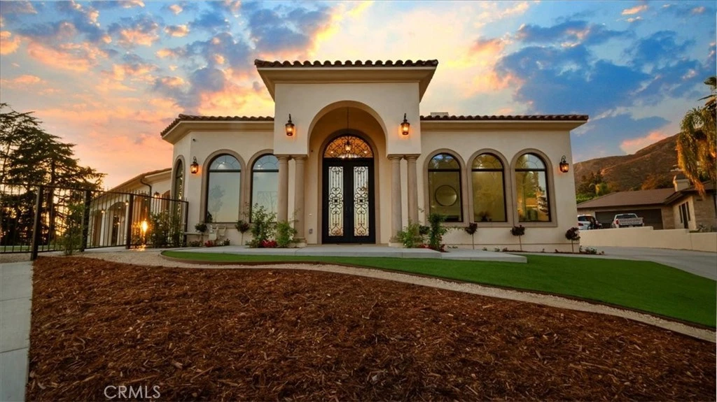 This brand new, just completed, ultra custom home is now available to be shown. This home was designed to showcase the classic features of traditional Mediterranean architecture, while incorporating a modern, contemporary interior where you will find the perfect melding of classic style as well as, current design & features. The curved contours of the architecture reflect the classic Mediterranean Revival style, boasting arches & designer details that provide contemporary glamour as well as beauty & sophistication to this masterpiece. As you approach this home you will be delighted by the 12 foot high double, ornamental door that opens to the 14 foot ceilings and arched windows on the interior. The views of the valley and mountains are amazing! It is highly unusual to find these views in a single level property. This home is approximately 5,200 square feet. It offers four large, ensuite bedrooms & six baths. The formal living and dining rooms are ideal for hosting special occasions and holiday entertaining. The kitchen is a chef's dream. There is a full suite of professional grade Thermador appliances that make meal prep a breeze. The breakfast bar is perfect for casual dining. The kitchen is open to a huge great room that incorporates a casual dining space, a cozy fireplace and wet bar. The perfect place to entertain family and friends. This space also has doors that when opened, disappear allowing for full access to the approximately 1,730 sq. ft. of outdoor living area. The loggia is huge and overlooks the sparkling pool and spa, as well as the putting green, and of course the views of the valley below. The master suite is very spacious and also boasts a beautiful view of the valley. It has a fireplace & a very large walk in closet. The master bath offers dual sinks, a free standing tub and separate shower, all beautifully appointed. Thoughtfully designed, there is a whole house LED lighting system with a security camera system & home audio system with stereo surround sound. There is an electric vehicle charging station & solar panels, Bring your RV, there is plenty of room to park it behind your private gated drive. The artificial turf makes maintenance a breeze. The natural grass area provides a place for children to play or pets to roam. While this luxury home provides style and elegance & timeless amenities, it truly is a place to enjoy the lifestyle you seek. This isn't just a home but a place to live your dreams in beauty & sophistication.