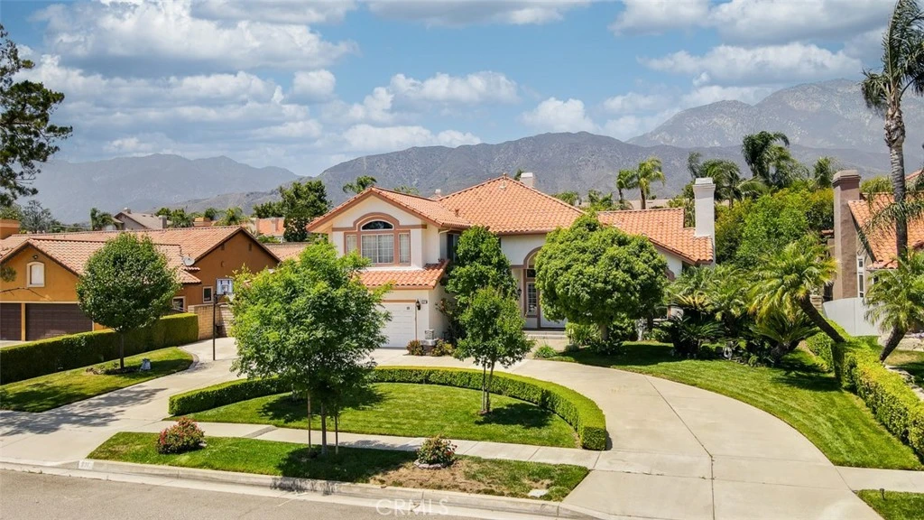 Welcome to your dream home in one of Upland’s premier neighborhoods. This expansive single-family estate offers 3,868 square feet of refined living space on a 21,000 square foot lot, combining upscale comfort with resort-style amenities. Inside, you'll find 4 generously sized bedrooms and 5 bathrooms, including a lavish primary suite with a spacious layout, walk-in closet, and spa-inspired ensuite bath. Two junior suites feature private bathrooms and ample closet space—ideal for guests, teens, or extended family. The fourth bedroom is equally inviting, with generous dimensions, natural light, and easy access to a nearby full bath—perfect as a guest room, nursery, or additional family space. The home also includes a private office with glass French doors, a versatile bonus room, and both formal living and dining rooms. The dining room has French doors opening to the lush backyard. The formal living room offers a picture window with views of the front yard, a fireplace for chilly nights, and is enhanced by engineered hardwood flooring, soaring ceilings, and abundant natural light. At the heart of the home is the gourmet kitchen with an open-concept layout leading to the family room. It features a Thermador 6-burner gas range, Viking downdraft, granite countertops, Travertine backsplash, recessed lighting, double stainless steel convection ovens, Bosch dishwasher, built-in fridge, dual sinks, a bay window overlooking the tropical backyard, and ceramic tile flooring. Enjoy the walk-in pantry, coffee bar, and sunlit breakfast area with panoramic views. Step outside to a backyard designed for entertaining and relaxation. The expansive Aluma wood-covered patio includes lighted ceiling fans, stone planters, custom hardscape, and mature palm and fruit trees—creating a lush, serene setting. Host gatherings at the outdoor kitchen with built-in BBQ, sink, and counter seating. Unwind by the stone firepit or take a dip in the sparkling pool with Baja shelf and spa, all surrounded by professional landscaping and open space. Additional features include an indoor laundry room, water softener, 2 AC units, a 3-car garage, and a circular driveway offering curb appeal and guest parking. This home is a true oasis—elegantly designed for modern living, entertaining, and enjoying California’s indoor-outdoor lifestyle. Don’t miss your opportunity to own one of Upland’s finest residences. Conveniently located near the Colonies Shopping Center, top Upland schools, and more.