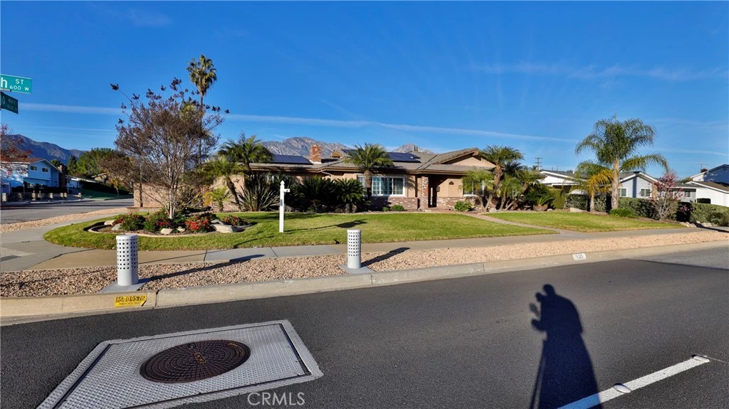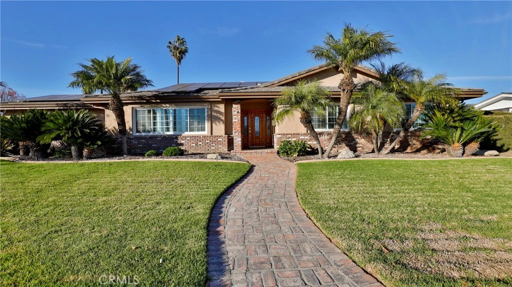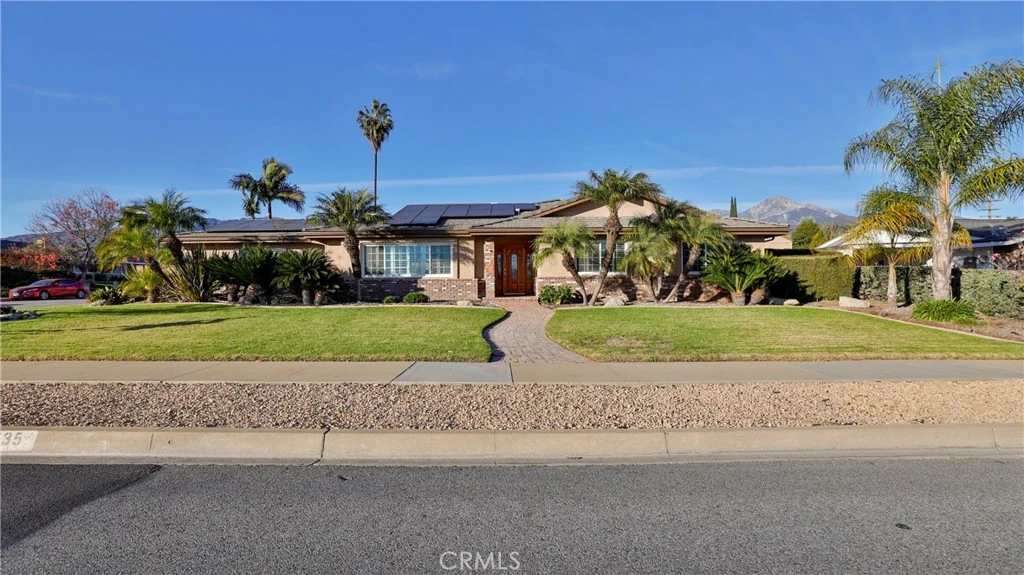 Welcome Home Move in and relax! This beautiful Upland home is ready for you to enjoy from day one. Featuring a thoughtfully designed layout, this residence combines comfort, style, and functionality for a truly exceptional living experience. Interior Highlights :Three spacious bedrooms and two full bathrooms provide ample room for family and guests. Th office can be converted to another bedroom. The upgraded kitchen offers modern finishes and conveniences, seamlessly connected to the open-concept great room with a cozy fireplace and stunning views of the backyard pool. Additional living spaces include a comfortable living room, a dedicated dining room, and a large office, perfect for working from home or pursuing hobbies. Interior features include recessed lighting, plantation wood shutters, and ceiling fans throughout for year-round comfort. The primary bedroom boasts a walk-in closet with a pull-down ladder for easy access to additional attic storage. Enjoy indoor-outdoor living with a sliding door that opens to an inviting patio and sparkling pool. A hardwired alarm system ensures your peace of mind. Engineered hardwood floors enhance the living room, dining room, kitchen, and main bedroom with both beauty and durability. Two custom fireplaces add warmth and charm to the home's living spaces. Garage and Exterior Features: A 28' x 76' detached garage at the rear of the property features four new garage doors, accommodating six or more cars, a hydraulic lift, and plenty of storage cabinets and shelving for organization. An additional RV pad includes an in-ground sewer line for convenient dumping. A custom-built detached shed (150 sq. ft.) with shelving provides even more space for tools or hobbies. The home and garage are topped with a durable tile roof and double paper for additional protection. 28 solar panels offer energy efficiency and cost savings. Copper plumbing was updated in 2002, and water lines from the meter to the house were replaced the same year. The block wall was rebuilt when the garage was constructed, ensuring privacy and security. Stay tuned for professional photos that will showcase all the exceptional features this home has to offer.