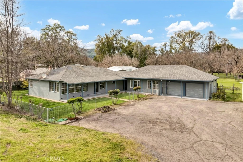 End of the road privacy right in Upper Lake on just over 1 acre! Large one story 2354sqft., 4bedroom/2.5bath stucco home located in town, yet is surrounded by orchards & open space and all set up for your 4H animals/gardening & more! This home has brand new fresh exterior/interior paint, upgraded dual pane windows through out, new ductless mini splits for heat/AC, low maintenance laminate flooring & tile, nice open kitchen, and a fantastic dining room with large picture windows to take in the country views. Bonus family/game room with one full bedroom/bath located off of the garage, perfect for guests! Attached 2 car garage and tons of parking out front with room for the boat/RV/travel trailer storage. Back yard is all currently crossed fenced and could be a nice spot in town for your own small farm (or even a horse!). Property is on public water/sewer wit a private well for irrigation. Hard to find all level & useable 1+/- ACRE country setting in town, even within walking distance to Main St. or schools!