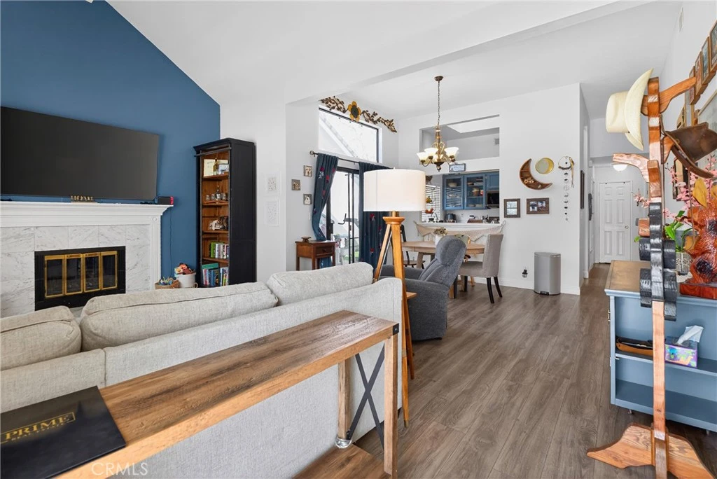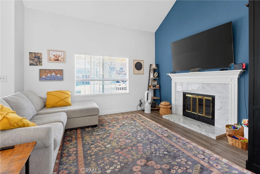 Filled with CHARM, this 2-bedroom + loft home in the Valencia Bungalows feels like home from the moment you step inside. The open floor plan creates a comfortable, easy flow, enhanced by upgraded flooring throughout. Natural light pours into the main living areas, creating a warm and welcoming atmosphere. The kitchen features newer appliances and opens seamlessly to the living and dining spaces. The downstairs primary offers a peaceful retreat with a beautifully updated vanity and mirrors in the primary bathroom. A second bedroom and full bathroom are also conveniently located downstairs for the functionality of a single story. Upstairs, there is a spacious LOFT that can add flexibility and can easily serve as a third bedroom, home office, or cozy creative nook. Enjoy walks along nearby paseos and easy access to parks, the community pool, shopping, restaurants, and Valencia Town Center. This Valencia gem offers comfort, convenience, and truly GREAT VIBES.