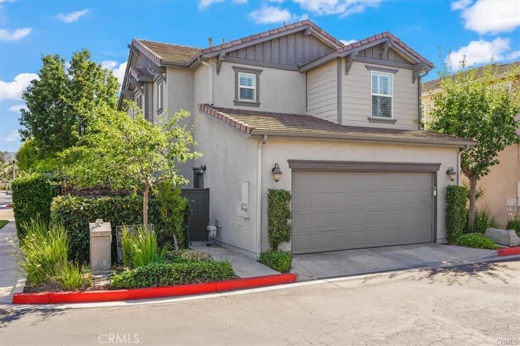 Live in the Heart of Valencia! This cozy home is tucked away in the popular Creekside community—just minutes from top-rated schools, shopping, and dining at Bridgeport Marketplace. Enjoy tree-lined streets and scenic paseos right across the street—great for biking, jogging, or evening strolls. Set back from the main roads, the home offers a private feel with a two-car garage and convenient indoor laundry room. Inside, you’ll find stainless steel appliances, dark wood cabinets, tile flooring, copper plumbing, new HVAC, dual-pane windows, and shutters throughout. Located on the cute sideyard area, there’s a covered patio—perfect for BBQs, relaxing, and outdoor hangouts—with space for a mini garden to grow your favorite plants. The patio also offers direct access to the garage side door and a wooden gate that opens to the driveway. All this with a low HOA! Link here for Virtual Tour: https://my.matterport.com/show/?m=k14QstM21WZ&title=0&brand=0