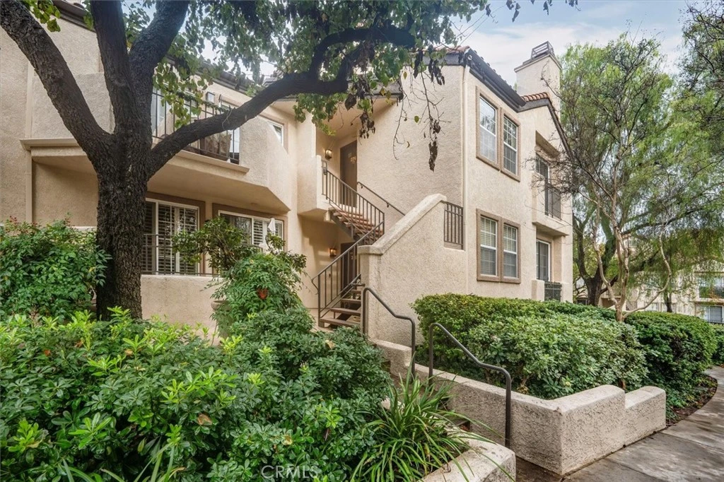 Come see this move-in-ready upper end-unit with a loft, ideally located in one of the best spots within Siena Villas—tucked away from busy streets and offering peaceful views of nearby trees and a greenbelt. As you enter, you’ll be welcomed by a light-filled great room featuring vaulted ceilings, multiple sliders and windows, and a cozy fireplace upgraded with modern stacked stone and a mantel. Smart shades in the living and dining areas, as well as the loft, allow you to open and close them effortlessly with the touch of a button or voice command via Alexa or Google. Step out onto the private balcony and enjoy serene views of the surrounding trees, greenbelts, and common areas. The kitchen is perfect for both everyday living and entertaining, featuring tile countertops, a 5-burner cooktop, and a refrigerator that is included. A large opening to the dining and living areas creates a seamless flow—ideal for hosting family and friends. The generously sized guest bedroom offers vaulted ceilings, direct balcony access, and is conveniently located across from a full bathroom upgraded with a quartz countertop and wood-style laminate flooring. The spacious and private primary suite also boasts vaulted ceilings and abundant natural light from four large windows. The en-suite bathroom includes a dual vanity with updated quartz countertops, wood-style laminate flooring, a nicely sized shower, and a walk-in closet. The versatile loft includes a closet and can easily function as a third bedroom, home office, or flex space. Additional highlights include indoor laundry with washer and dryer included, recessed LED lighting, central A/C and heating, and side-by-side parking in the gated underground garage. Beautiful Siena Villas is centrally located in the heart of Valencia, close to top-rated schools, shopping, dining, and convenient freeway access. The community offers three pools, spas, a tennis court, lush landscaping, and a car wash bay. No Mello-Roos, and VA & FHA approved!! This one won't last!
