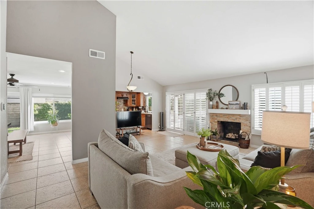 Valencia Pool Home beautifully upgraded 3-bedroom, 2-bath single-story nestled on a double cul-de-sac with NO HOA and NO Mello-Roos! Bonus OWNED SOLAR!!! This light-filled home features an open and inviting layout with recessed lighting, crown molding, tile flooring, dual-pane windows, plantation shutters, french doors, and ceiling fans. Recent upgrades include newer exterior paint, HVAC system, and newer pool equipment and pool plaster refresh. The spacious family room offers a cozy fireplace, abundant natural light, and serene backyard views, flowing seamlessly into the dining area. The upgraded kitchen is both stylish and functional, featuring granite countertops, upgraded cabinetry with pull-out drawers, quality appliances, and an open layout ideal for entertaining. The primary suite boasts high ceilings, mirrored wardrobe doors, and direct backyard access. The remodeled en-suite bath showcases a sleek glass-enclosed walk-in shower. Two additional bedrooms and an upgraded secondary bathroom complete the interior. Step outside to a true entertainer’s dream backyard. Enjoy a sparkling pool and spa surrounded by lush landscaping and beautiful hardscape. Two covered patio areas create the ultimate indoor-outdoor lifestyle—one featuring a TV lounge space perfect for relaxing or game days, ideal for hosting gatherings year-round. Ideally located near top-rated schools, parks, Valencia paseos, shopping, dining, and easy freeway access. This home offers the perfect blend of comfort, style, and convenience. Don’t miss this incredible opportunity to make this your next home!