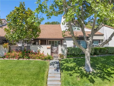 Stunning move-in ready townhome in the popular Rose Arbor community of Valencia Northbridge! This beautifully updated 2-bedroom, 2-bath home features wood-like laminate flooring, designer interior paint, healthy HVAC system, recessed lighting, ceiling fans, and custom blinds throughout. The light and bright open layout includes a gorgeous kitchen equipped with stainless steel appliances, Corian countertops, an under-mounted sink and faucet, recessed and accent lighting, and ample cabinetry. Upstairs, the spacious primary suite offers high ceilings, a large paneled-door closet, a ceiling fan, and peaceful greenbelt views. A generous secondary bedroom, full bathroom, and convenient linen storage complete the upper level. Enjoy the private, low-maintenance backyard with concrete patio, decorative rock landscaping, and artificial turf—perfect for outdoor relaxation. Additional highlights include an attached garage with tile flooring, a second detached garage, and in-unit side by side laundry. The HOA covers water, trash, patrolled security, common area maintenance, and access to the community pool and spa. Ideally located near award-winning schools, Valencia Town Center, shopping, dining, scenic paseos, and just minutes to the freeway. No Mello Roos!