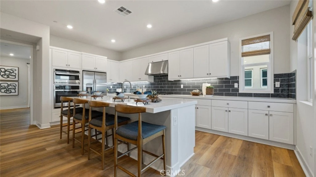 Referred to as "Element Plan 7" this single level condominium on the top/3rd floor of the building, has extremely high ceilings, Quartz kitchen counter tops, built in cabinets in kitchen & hallway, Samsung kitchen appliances, Navien tankless water heater, circulation pump, security system at building lobby, Ring security camera/doorbell and Schlage keyless entry at entry, Honeywell thermostat for programmable a/c and heating. Has a exposed deck, very large private storage locker (located in hallway) and detached 2-car extended (very long) tandem garage. Every square foot of flooring has been upgraded with luxury premium vinyl plank flooring in the kitchen, premium carpet throughout the dry areas and 12" x 24" ceramic tile in the bathrooms, totaling nearly $23,000 in upgraded wholesale pricing FOR FREE! Location is high above Santa Clarita valley, with access to community's 3 resort-style pools and spa, and just minutes from 5 freeway and formidable retail.