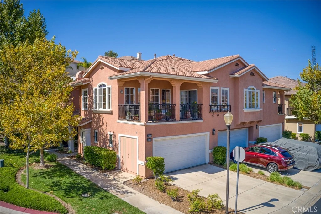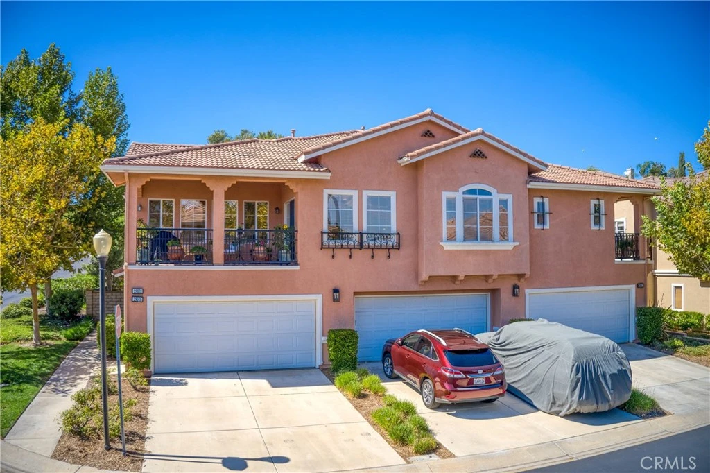 No MELLO ROOS!! Charming Valencia Retreat – Your Dream Home Awaits! Welcome to your idyllic sanctuary in the heart of Valencia, where comfort meets convenience without the burden of Mello Roos! As you arrive, you'll appreciate the convenience of your attached 2-car garage plus 2-car driveway, offering direct access to your private oasis. Ascend the stairs to discover a sprawling open floorplan bathed in natural light, showcasing beautiful hardwood floors complemented by plush carpeting in the bedrooms. The heart of the home features a spacious living area that seamlessly flows into the dining room, perfect for entertaining or relaxing in style. Step outside to your extra-large balcony, an ideal space for morning coffees or sunset gatherings surrounded by serene views of the lush neighborhood foliage. Indulge in your luxurious primary suite, complete with a private balcony and a spa-like ensuite bathroom, featuring an oversized soaking tub, dual vanity, and a walk-in closet - truly a retreat within your home. The convenience of an upstairs laundry room adds to the thoughtful layout, ensuring ease of living. This unique end-unit townhome boasts a private entrance and driveway - an uncommon find, with ample guest parking available right outside your door. Enjoy access to community amenities including two sparkling pools, inviting spas, a playground, and picnic areas that encourage outdoor fun and relaxation. Located just across from Valencia High School and within the award-winning school district, this home is a short distance from shopping, dining, and freeway access. Plus, adventure awaits with the famous Valencia paseos, offering miles of scenic trails right outside your front door. Don’t let this remarkable opportunity slip away. Schedule your private tour today and experience the charm and convenience of Valencia living at its finest! This is not just a home; it’s a lifestyle. Welcome home!
