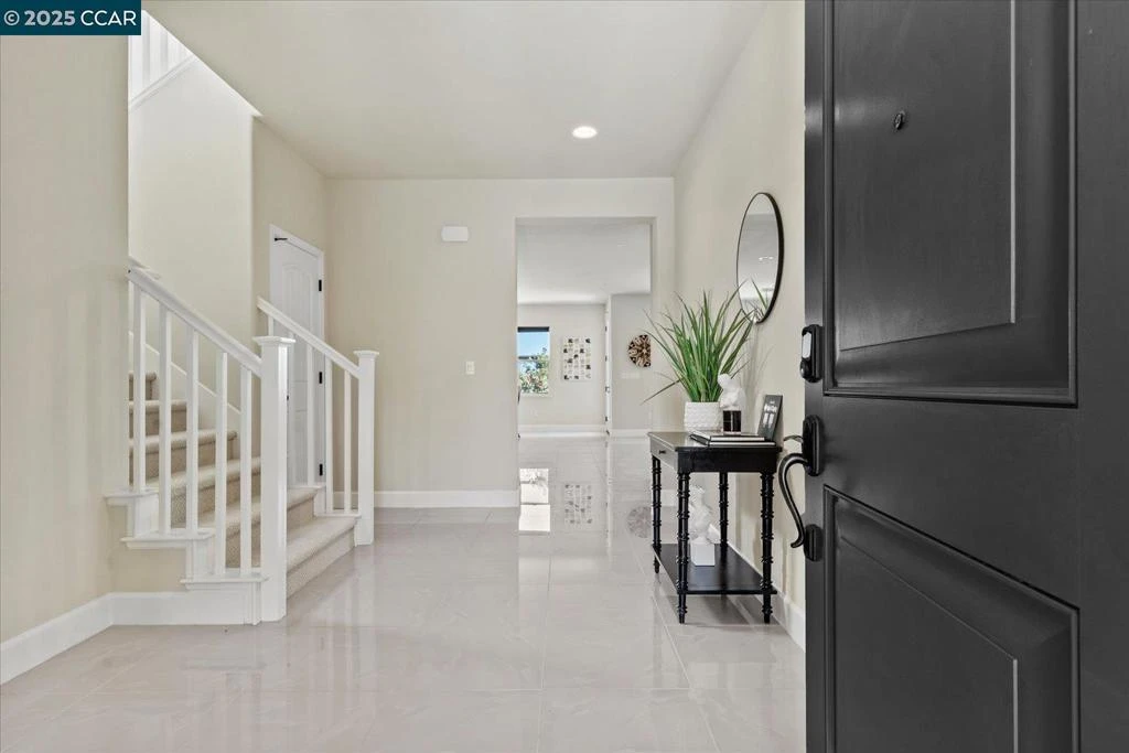 Stunning 4-Bedroom Home with Views & Upgrades Welcome to this beautifully upgraded 4-bedroom, 3.5-bath home built in 2017, located on the desirable Benicia/Vallejo border. Enjoy privacy with no rear neighbors and sweeping views from the primary suite and backyard. This spacious 2-story home features an open-concept layout, a chef’s kitchen with stainless steel appliances and a large island, plus an adjacent entertainment room and custom indoor/outdoor lighting—perfect for hosting. A full bedroom and bath on the main floor add flexibility for guests or multi-gen living. Relax in the spa-like primary suite with a soaking tub, walk-in shower, and generous closet. Outdoors, enjoy low-maintenance landscaping, stamped concrete and beautiful views. Low HOA covers front yard maintenance. Close to shopping, dining, and SF ferry/transit—this one checks all the boxes!