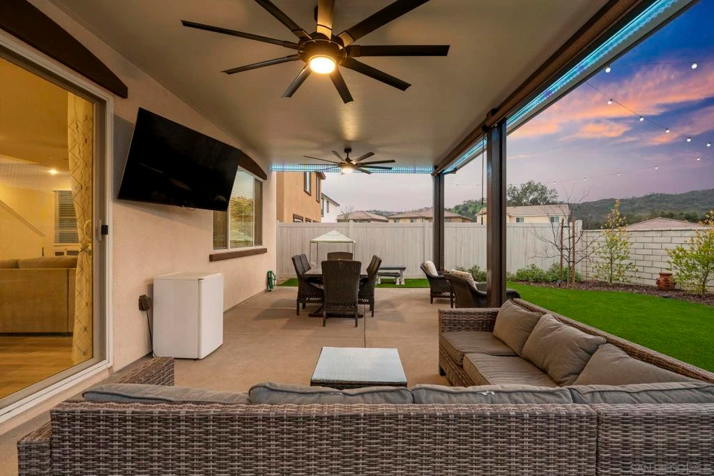 Desirable 5BR/ 3BA floor-plan in the master planned community of 'Park Circle’ in Valley Center! SOLAR powered by 'Sun Power' with a 12 panel / 4.2KW system owned outright, saving you thousands on energy costs! Backyard renovations of over $50k offer the perfect area for entertaining family & friends while taking in panoramic mountain VIEWS! Home features a spacious, open floor plan w/ a gourmet kitchen w/ stainless steel appliances & hardware including a 5-burner gas cooktop, white 'shaker' cabinetry w/ quartz stone slab countertops & large kitchen island, recessed lighting w/ farmhouse style lighting above the kitchen table, large walk-in pantry & more. Other interior features include an entry-level bedroom & full bath + 4 bedrooms & a loft upstairs, upgraded 'LVP' luxury vinyl plank flooring throughout the main level & all bathrooms, newer Low-E windows & slider w/ faux wood blinds, custom wall decor & electric fireplace w/ hand built mantle in the living room, ceiling fans w/ light dimmers in every room, timed lighting ‘Title 24’ compliant in every room & a full-size laundry room upstairs for convenience. Backyard renovations of over $50,000 make this the perfect area for entertaining with family & friends or relaxing on your own! Enjoy panoramic MOUNTAIN VIEWS from underneath the ‘Alumawood' patio cover with 2 overhead fans, electrical wiring & ‘roll down’ shades, a wall-mounted outdoor TV & the stamped concrete and turf make the yard practically NO maintenance. The home is also hard wired w/ a home alarm system & a tankless water heater to convey. Residents of Park Circle enjoy resort-style amenities including a private clubhouse, 2 community swimming pools & spas, a community fitness center, pickleball courts, BBQ areas & playgrounds, an enclosed dog park & scenic walking & biking trails all within Park Circle. Don’t miss your opportunity to own in one of Valley Center's most desirable newer neighborhoods!