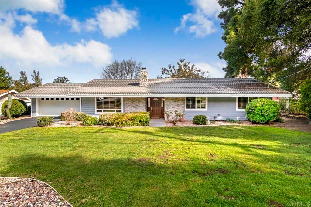 This charming single-story home is sure to win you over from the moment you arrive. Nestled right against the Castle Creek Golf Course, you'll enjoy sweeping views of lush fairways and serene greenery—right from your own backyard. Step inside to a spacious living room featuring vaulted ceilings and a cozy wood-burning fireplace with elegant stacked stone veneer, creating a warm and inviting atmosphere. The classic kitchen offers double ovens, rich cabinetry, a breakfast bar that seats four, and—yes—more stunning golf course views. Open to the kitchen, the dining area flows seamlessly outdoors through a large sliding door, leading to a generous backyard with mature trees, built-in planters, and plenty of space to design your dream outdoor retreat. Whether it’s a pool, garden beds, or an outdoor kitchen, this yard can accommodate it all. The expansive covered patio with Alumawood cover is ideal for year-round entertaining. The oversized primary suite features an ensuite bath complete with dual sinks, a vanity area, and a large shower stall. With easy and convenient access to Hwy 15, commuting or exploring the county couldn’t be easier. This home truly offers the best of both worlds—peaceful golf course living with great connectivity.