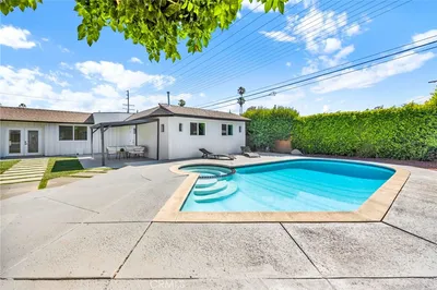 Welcome to this beautifully updated and versatile property set on an expansive 16,680 sq ft lot, offering the perfect blend of modern comfort, space, and functionality. The main residence features 4 bedrooms and 4 bathrooms across 2,901 sq ft of living space, thoughtfully designed for both everyday living and entertaining. At the heart of the home is a newly renovated modern kitchen that features granite countertops, stainless steel appliances, glass tile backsplash, & custom cabinetry. This seamlessly flows into the dining area, both highlighted by elegant marble flooring that adds a timeless, upscale touch. The spacious layout offers generous natural light and an inviting atmosphere throughout. Three of the bedrooms in the main house are true suites, each with its own private bathroom, with the large master bedroom including a walk-in closet, while a separate office provides flexibility for working from home or additional living space. Step outside to enjoy expansive front and back yards, ideal for gatherings, relaxation, or future customization. The property also features a Saltwater pool with a brand-new filter, ready for effortless enjoyment. Adding exceptional value is the detached guest house with its own private entrance, offering 1 bedroom and 1 bathroom—perfect for extended family, guests, or rental income.