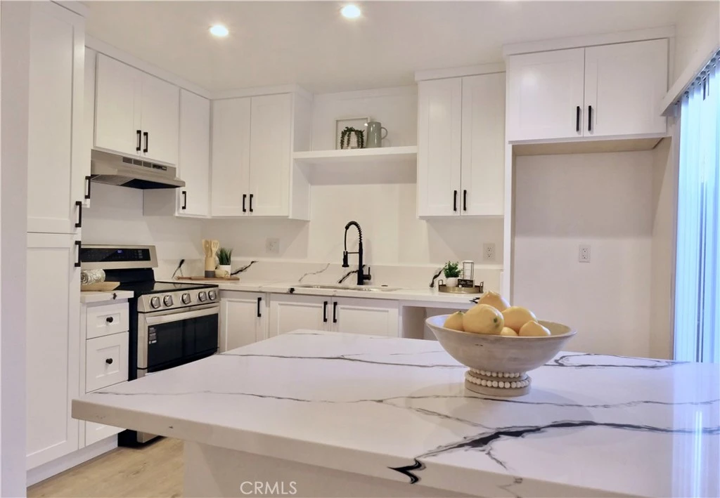 Welcome to this stunning two-story townhouse located in Walnut Gardens. Completely transformed with no detail overlooked. Offering 2 bedrooms, 1.5 bathrooms, and 971 square feet of beautifully reimagined living space, every inch was thoughtfully renovated to create a fresh, elegant home that feels brand new. The kitchen is truly the heart of this home, featuring custom cabinetry, a sleek new Quartz countertop, and a beautifully crafted island with generous drawer storage — perfect for cooking, entertaining, or simply gathering. A new stove complete the space with both form and function. Both bathrooms have been elevated with custom cabinetry, all-new sinks and faucets, delivering a spa-like experience you'll love coming home to. Custom closet doors throughout add a polished, bespoke touch — including a beautifully finished hallway linen closet and elegant new upper doors in the second bedroom. New sliding closet doors in both bedrooms keep everything cohesive and refined. Freshly painted throughout and finished with gorgeous new flooring, this home radiates warmth and style across both levels. Central heating and air keep you comfortable year-round, and two tandem parking spaces add everyday convenience. Beyond your front door, enjoy resort-style community amenities including a sparkling pool and recreation area — perfect for relaxing or entertaining on a larger scale. This townhouse is truly move-in ready. Simply unpack and start living beautifully.