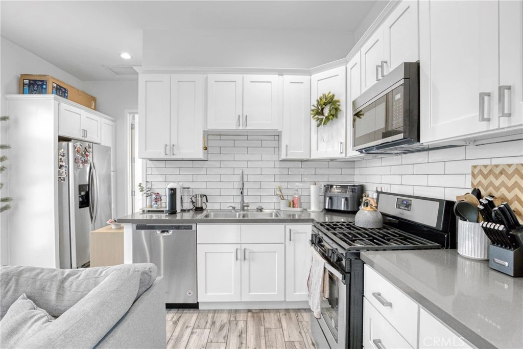 Beautifully updated single-level apartment in a gated fourplex. Featuring wood and tile flooring throughout, high ceilings, and a bright open layout. The contemporary kitchen offers brand-new cabinets, stone countertops, and stainless steel appliances; perfect for cooking and entertaining. This secure gated property has surveillance cameras, a private patio for outdoor relaxation, on-site parking, and a shared laundry room. Ideally located in a central area close to shopping, public transportation, and major freeways.