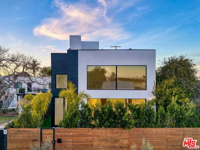 Discover an unparalleled Modern Hacienda-style compound inspired by Venice's rich artistic heritage. Completed in 2020 by acclaimed architecture and design firm Electric Bowery, with landscape design by Terremoto, the residence comprises a main home and a versatile guest house on an expansive 10,415 square-foot lot. Enveloped by luxuriant grounds and secured behind gates, the compound was designed to blur the lines between interior and exterior living spaces through the continuous use of natural materials like limestone and vein-cut travertine. Featured in Architectural Digest Latin America, the visionary residence is meticulously curated for a bold, yet tranquil living experience emphasizing natural light, unique textures, and luxurious finishes. Enter the main residence through a dramatic foyer, where the eye-catching turquoise-plastered walls of the media lounge is to the right, and the great room with a gourmet kitchen featuring a Lacanche range and family room with a bar is on the left. Ideal for lavish entertaining and everyday living, the great room is flanked by floor-to-ceiling steel-framed doors that showcase picturesque garden views. Bespoke millwork in oak with an indigo-ebony finish and sculptural lighting by Apparatus Studio anchor the space, while whole house automation by Control4 allows residents to conveniently command the ambiance with the touch of a button. Traverse the gallery to enter the primary wing, where each detail was thoughtfully considered to create a haven of comfort. Here, find two custom walk-in closets, an ensuite with a skylight-lit rain shower and dual vanities, and generous sleeping quarters. Meandering pathways through the lush landscape travel by water features, a Japanese copper cold plunge, an outdoor shower, multiple patio spaces including one set around an outdoor wood-burning fireplace beneath a retractable canopy, and the handcrafted-tiled pool/spa. Completing the awe-inspiring experience is a versatile guest house or artist's studio with a secondary suite, living space, office, and yoga studio with radiant heated floors and a state-of-the-art sauna. Attached to the guest house is an oversized three-car garage with ample storage space. Crafted for those seeking a creative retreat in one of LA's most vibrant artistic communities, this residence affords the opportunity to live in a home where every architectural angle sparks creativity, every material tells a story, and inspiration flows as freely as the California sunshine.