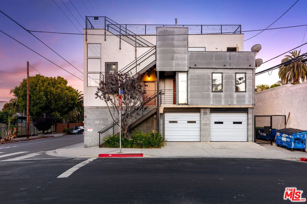 A perfect office alternative or residence; this one-of-a-kind architectural live-work loft, steps to Abbot Kinney Blvd nightlife and shopping. A light-filled corner unit that offers a townhouse style walk up with private 2-car parking garage, a balcony and a roof deck with 360 views, an open floor plan with 20-foot ceilings and automated smart home features. Divine northern exposure lighting throughout and a fresh ocean air breeze from the living room's industrial sliding door. The covered balcony adjoins both the dining area and modern kitchen w/ Caesarstone countertops, walnut cabinetry, under cabinet lights and stainless appliances. Upstairs is the large sleeping area loft which has extra office/flex space and custom wardrobe closet off the main bathroom. The interior features an additional half-bath, white Terrazzo flooring, automated home lighting, Nest video doorbell/thermostat, motorized black out window coverings, in unit laundry area with washer/dryer, storage & FCFS guest/community parking. Large roof deck space with 360 degree views of city lights from the ocean to Hollywood. This is a rare offering in one of the most sought after Abbot Kinney art loft buildings.