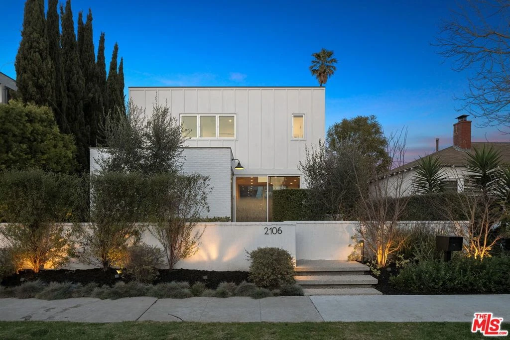 Step into a world where modern elegance meets effortless Venice living. This Mid-Century Modern-inspired home, designed by architect Bill Tsui and custom-built by Brian Tarr of BTC Builders in 2020, is on the market for the first time. The clean white lines that define the facade belie the warm, wood-accented interior flooded with natural light. Floor-to-ceiling glass walls and sliders dissolve the boundary between inside and out, creating an open yet intimate atmosphere. Set back on a quiet street, the elevated entry and dramatic frosted glass pivot door offer a grand yet inviting welcome. The open-concept lower level is well-defined and inviting. The media room - outfitted with generous custom bookcases, a large-screen TV, and Sonos surround flows effortlessly into both a private courtyard and the patio/pool area. A stunning kitchen can fit all the sous chefs, with milled cabinetry, an expansive porcelain-topped island and peninsula, and top-of-the-line Sub-Zero / Wolf appliances. A beautiful dining area meets the cozy living room, replete with a brick-faced fireplace and dry bar with a Sub-Zero wine cooler and glass-enclosed cabinets. Step outside to your private Mediterranean-inspired oasis featuring a swimming pool and spa (with automatic cover), the al fresco living room warmed by the custom copper coped and Heath tiled firepit, and an expansive outdoor dining room, all bordered by lush succulent beds. Back inside, the central steel-framed staircase is a showstopper - anchoring the home while drawing the focus upstairs. Here we find 4 of the 5 bedrooms (3 with en-suite baths). The primary suite, perfectly positioned on the east side to embrace the morning sun - boasts soaring ceilings, dual walk-in closets, and a spa-like bath. The built-in bookcases conceal a hidden TV, while a Sonos surround system completes this luxurious haven. A smart, sustainable, and efficient home - a 9.8kW solar system (battery ready) powers the property with dual EV chargers in the 2-car garage and wired for up to 7Gb of fiber Internet service. The automated Control-4 system seamlessly manages the home's lighting, motorized shades, security system/exterior cameras, HVAC, and Sonos throughout. A rare opportunity to own a one-of-a-kind Venice retreat.