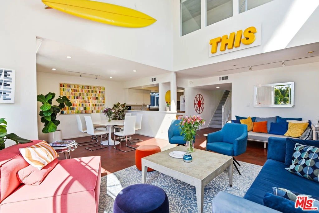 Set on a coveted west facing corner along the iconic Venice Canals, this two story canal front residence offers an exceptional blend of light, volume, and coastal serenity, with glowing sunset views stretching down the water. Soaring ceilings define the main living and entertaining spaces, where dramatic vertical volume meets walls of windows framing the enchanting canal below. The open concept kitchen, dining, and living areas flow effortlessly together, all oriented toward the water and opening to a sizable canal facing deck. This sun drenched outdoor space is ideal for afternoon lounging, sunset gatherings, or simply enjoying the ocean breeze. Upstairs, the primary suite feels airy and elevated with lofted ceilings, tranquil water views, and a private balcony overlooking the canal. Each bedroom enjoys its own patio or balcony, creating seamless indoor outdoor living throughout. A ground floor en suite bedroom offers flexibility for guests, office use, or extended stays. Additional highlights include en suite bathrooms in every bedroom and a two-car garage plus two additional parking spaces. Ideally positioned for easy access in and out of the neighborhood, the home offers peaceful waterfront living without being tucked deep within the canal grid. Just moments from the beach, Abbot Kinney, and the best of Venice dining and retail, this is refined coastal living at its best. The home also carries a touch of Hollywood history, having served as the iconic "Baywatch" residence of lifeguard Mitch Buchanan.