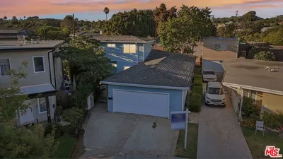 Tucked away on a quiet tree-lined street two blocks from Abbot Kinney, this property combines a Craftsman bungalow with a detached duplex. As you enter, you're greeted by lush landscaping that surrounds the grounds, one of the unique characteristics of this setting. The front bungalow includes a new roof, private deck, open layout, wood-beam details, and a built-in window seat. Each of the three residences offers two bedrooms, one bath, full-size laundry, and a private outdoor area. Shared interior elements include exposed beams, knotty pine flooring, and natural light. The rear up-and-down duplex includes a new roof and carries the same interior features. Both duplex residences offer private outdoor areas; the lower unit's primary bedroom features double doors which open directly to its outdoor space, and the upper unit includes vaulted ceilings and skylights that create an open, airy feel. Gated parking for four cars sits at the rear with electric gate access. Ideal for an owner-user or investor with the option to live in one residence while leasing the others. Located steps from Abbot Kinney, the property offers walkability to dining, boutiques, and Venice Beach.