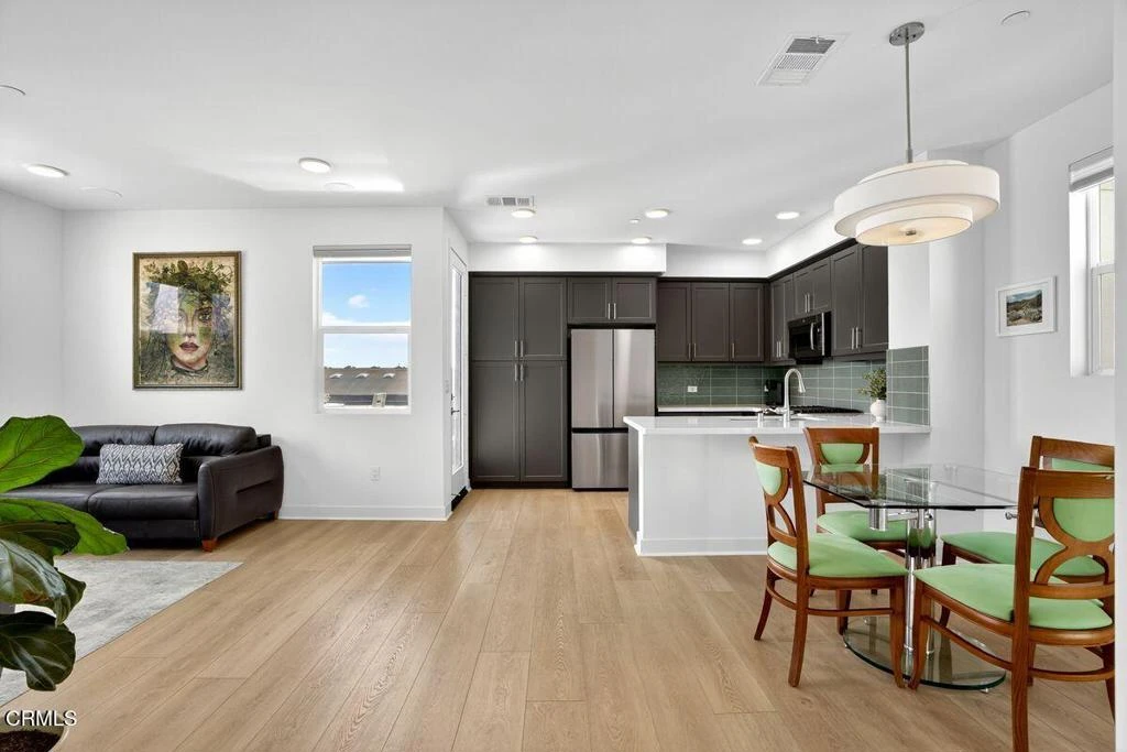 Welcome to The Pearl, a newly built community in the heart of Midtown Ventura, just a quarter-mile stroll to the beach and less than a mile from the charm of Downtown. This stunning Plan 2 townhome blends sleek, coastal-inspired architecture with an open-concept design, upscale finishes, and OCEAN VIEWS from almost every room. The luxurious primary suite, your private retreat complete with a spacious walk-in closet and elegant en-suite bath. With a location like this, checking the surf can be one of the very first things you do-right from your own bedroom or one of your 3 balconies.The bright, airy main living area flows effortlessly into a contemporary kitchen featuring stainless steel appliances, quartz countertops, and a private deck--ideal for relaxing, entertaining, or just enjoying that ocean air. The experience is completed by an installed Sonos speaker system. Additional upgrades include: (Full list available) -Luxury Vinyl Plank throughout living spaces and bedrooms. -Upgraded backsplash -Added storage in primary en suite and upgraded mirrors-Soft close cabinetry -Double Elkay Sink-Tap/sensor Moen kitchen faucet -Electric fireplace and wiring for EV Charger-Custom, top-down- bottom-up window coverings Don't miss this rare opportunity to own a new construction townhome in one of Ventura's most desirable neighborhoods- with a view! Walkable to the beach and downtown, it's hard to beat!Modern style, ocean views, and coastal convenience--The Pearl has it all.