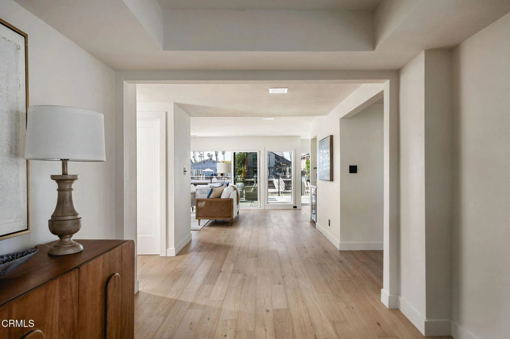 Exceptional waterfront home offering refined coastal living in the heart of the Ventura Keys. This four bedroom, three bath residence plus bonus room has been thoughtfully updated throughout.The first level features an open kitchen, dining, and living area filled with natural light and oriented toward the water. Engineered French oak flooring and rift sawn white oak cabinetry set a warm, modern tone, while new windows and doors create seamless access to the expansive waterside patio. The first level also includes a bedroom and full bath, indoor laundry, and direct access to the attached two car garage.Upstairs, the home offers three additional bedrooms, including the primary suite with an oversized walk in closet. A dedicated bonus room provides flexible space for a home office, media room, or additional lounge area.Outdoor living is a standout feature, with a generous patio and fire pit overlooking the channel and a private 35 foot boat dock. Additional upgrades include a new roof and new HVAC system.The voluntary homeowners association offers access to two private beaches, pickleball courts, a basketball court, and community barbecues. A turnkey waterfront opportunity combining modern updates, generous outdoor space, and one of Ventura's most desirable coastal neighborhoods.