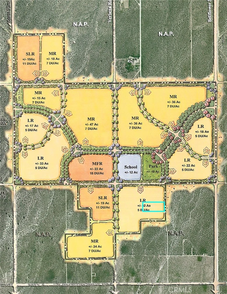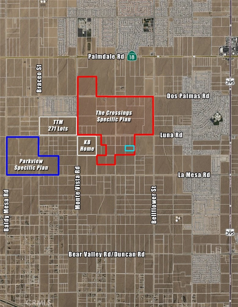 5 ac residential land in the Crossings Specific Plan. Located in West Victorville, this area is primed as the next major residential development hub. 80 ac at Luna and Monte Vista has a vested TTM for 269 lots. KB Home recently resubmitted a 135 lot TTM on 40 ac at Luna & Monte Vista. Two massive Specific Plans encompass this area, The Crossings, comprised of plans for 2,656 lots on 449 ac, and Parkview Specific Plan, comprised of plans for 715 lots on 177 ac. This 5 ac is in a portion of the Crossings Specific Plan slated for 5 units/ac (see map). This is a great opportunity to acquire in this area before it eventually is built out.
