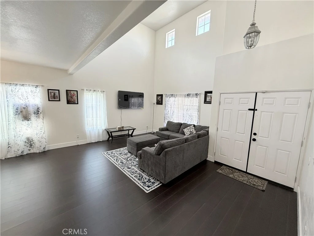 Located in the desirable Eagle Ranch community, this spacious Victorville home offers 5 bedrooms, 3 bathrooms, and approximately 2,598 sq ft of comfortable living space, including one bedroom and one full bathroom conveniently located downstairs. The open-concept design seamlessly connects the kitchen, dining, and main living area, creating an ideal space for everyday living and entertaining. The living room features a striking stone fireplace and flows directly into the kitchen and dining area. A separate formal dining room provides additional space for gatherings. Plenty of windows throughout the home bring in abundant natural light. The island kitchen includes a large pantry and abundant cabinetry for excellent storage. Beautiful newer hardwood-style flooring on both levels, along with newer interior paint, adds a fresh, modern touch from the moment you enter. Upstairs, you’ll find three spacious secondary bedrooms with generous closet space, conveniently located near a shared hallway bathroom. The flexible layout works well for guests, multi-generational living, or a home office. The spacious primary suite features high ceilings, a walk-in closet, and a bathroom with tile flooring, dual sinks, and a shower with Roman tub combo. Additional highlights include an indoor laundry room, dual-pane windows, ample garage storage, a newer HVAC system and condenser, plus a separate downstairs wall-mounted A/C unit for energy-efficient cooling. Step outside to a large 7,500 sq ft park-like backyard, ideal for a sparkling pool or outdoor entertaining. Conveniently close to Mesa Linda Park, Eagle Ranch Park, Mesa Linda Middle School, Walmart, Starbucks, dining, and freeway access.