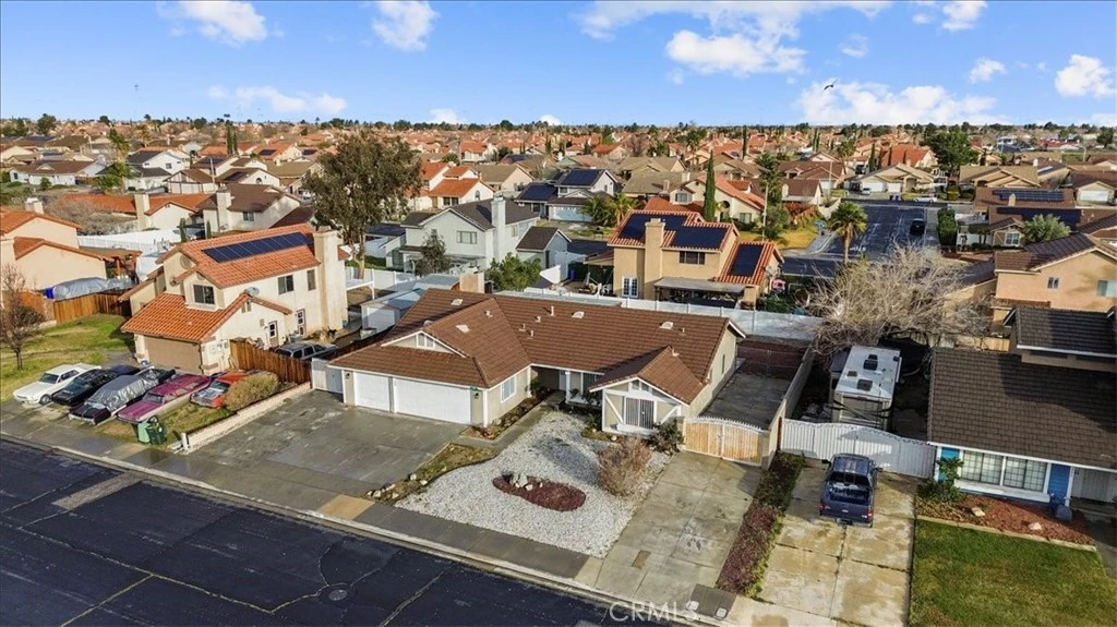 Single story home offering 3 bedrooms and 2 bathrooms with an attached 3-car garage and gated RV parking on an 8,850 square foot lot. 1,584 square feet of living space. Two additional RV friendly driveways provide expanded onsite parking for your RV, boat, trailer, or work vehicles. Single story homes with this level of parking are limited in this area. Vaulted ceilings bring natural light into the main living space. The living room is open and bright. The family and dining area features a fireplace and connects directly to the kitchen for practical daily living. The primary suite includes a walk-in closet and a private bath with dual sinks. Two secondary bedrooms provide flexibility for guests, office use, or long-term needs. The backyard features a large patio and functional outdoor space for gatherings or dining. The front and back yards are finished in rockscape for low maintenance. A hardscaped patio and walkway lead to the front yard, and a dedicated dog run adds function. Central heating and air conditioning provide year-round comfort. Minutes from Victor Valley Mall and positioned between Interstate 15 and Highway 395 for direct commuter access. Schedule your private showing.