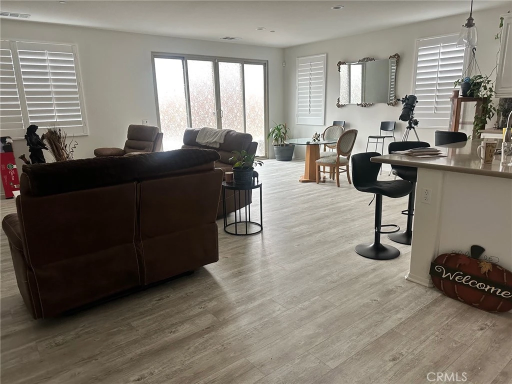 Welcome to your dream home! This stunning single-story gem, built in 2020, is a perfect blend of modern design and comfortable living. From the moment you step onto the charming covered porch entry, you’ll feel right at home. The beautifully designed kitchen offers both style and functionality, featuring high-end stainless steel appliances, sleek white lacquer-finish cabinets, and sparkling quartz countertops and a spacious island perfect for meal prep or casual dining. A double sliding door seamlessly connects the kitchen to the patio, making indoor-outdoor living a breeze. Natural light floods the dining room, creating a bright and welcoming atmosphere. Every window is dressed with stylish shutter coverings, adding a touch of sophistication. The backyard offers the perfect space for relaxation, entertainment, or play. The luxurious master suite is your personal retreat, complete with a private bath, dual sinks, and an oversized walk-in closet. With three bedrooms, a second full bathroom, and a versatile flex room that can serve as an office, guest room, or even a fourth bedroom, this home is designed to fit your lifestyle. Nestled in a peaceful rural community, this property offers the perfect combination of tranquility and modern convenience. Whether you're hosting gatherings, working from home, or simply enjoying quiet evenings, this home has it all.